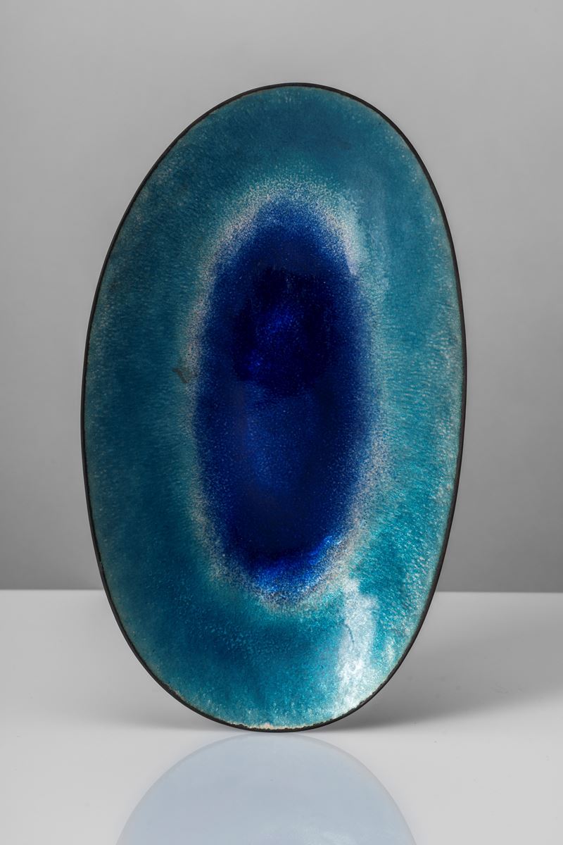 Vassoio a smalti policromi su rame, 1960 circa
