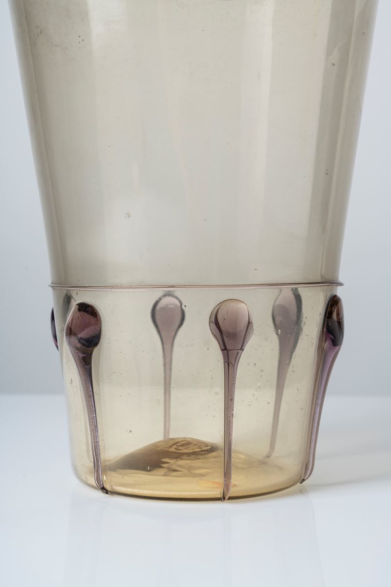 Vaso in vetro soffiato 'pagliesco' con 'goccioloni' applicati