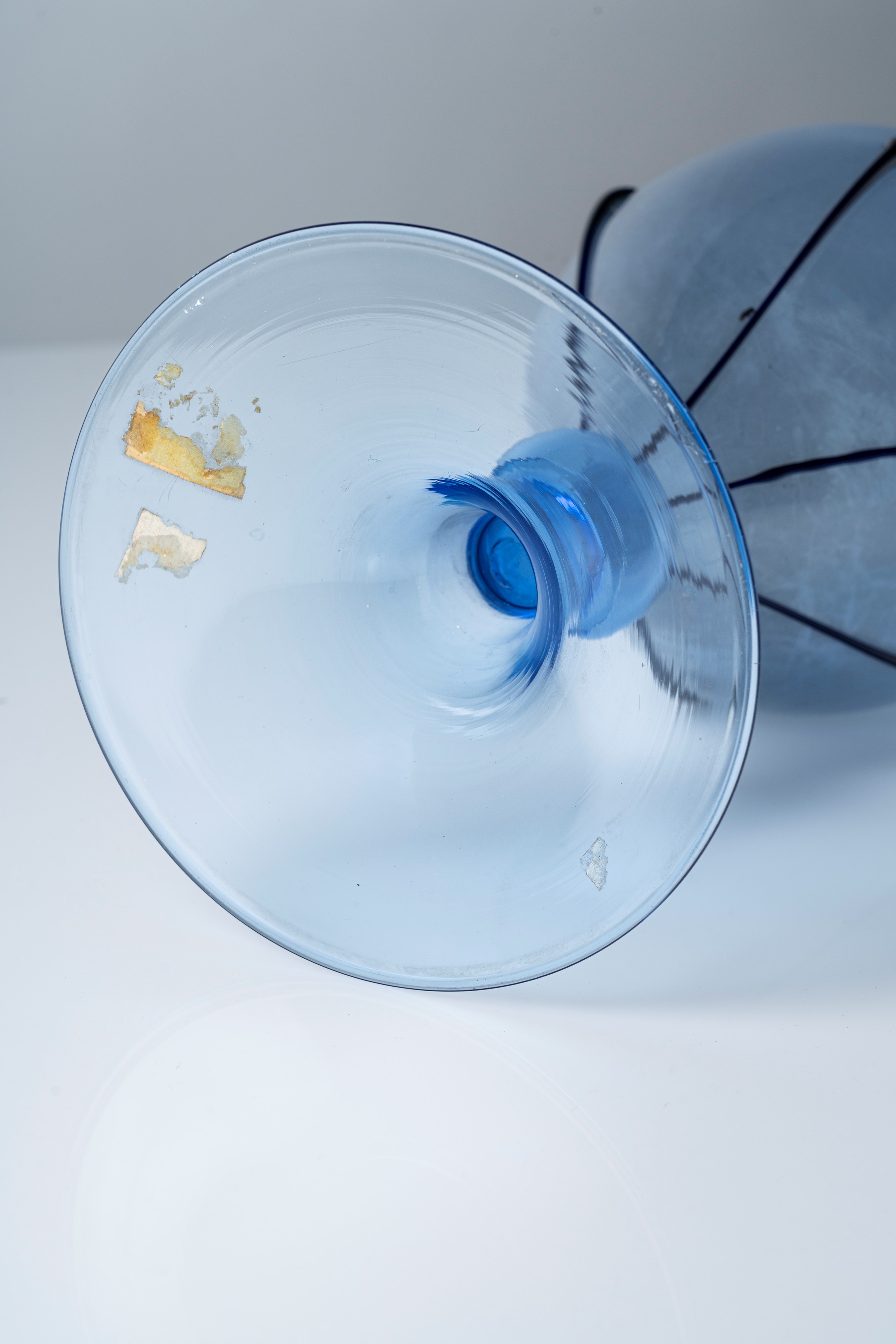 Vaso a calice in vetro soffiato con piede e 'goccioloni' applicati