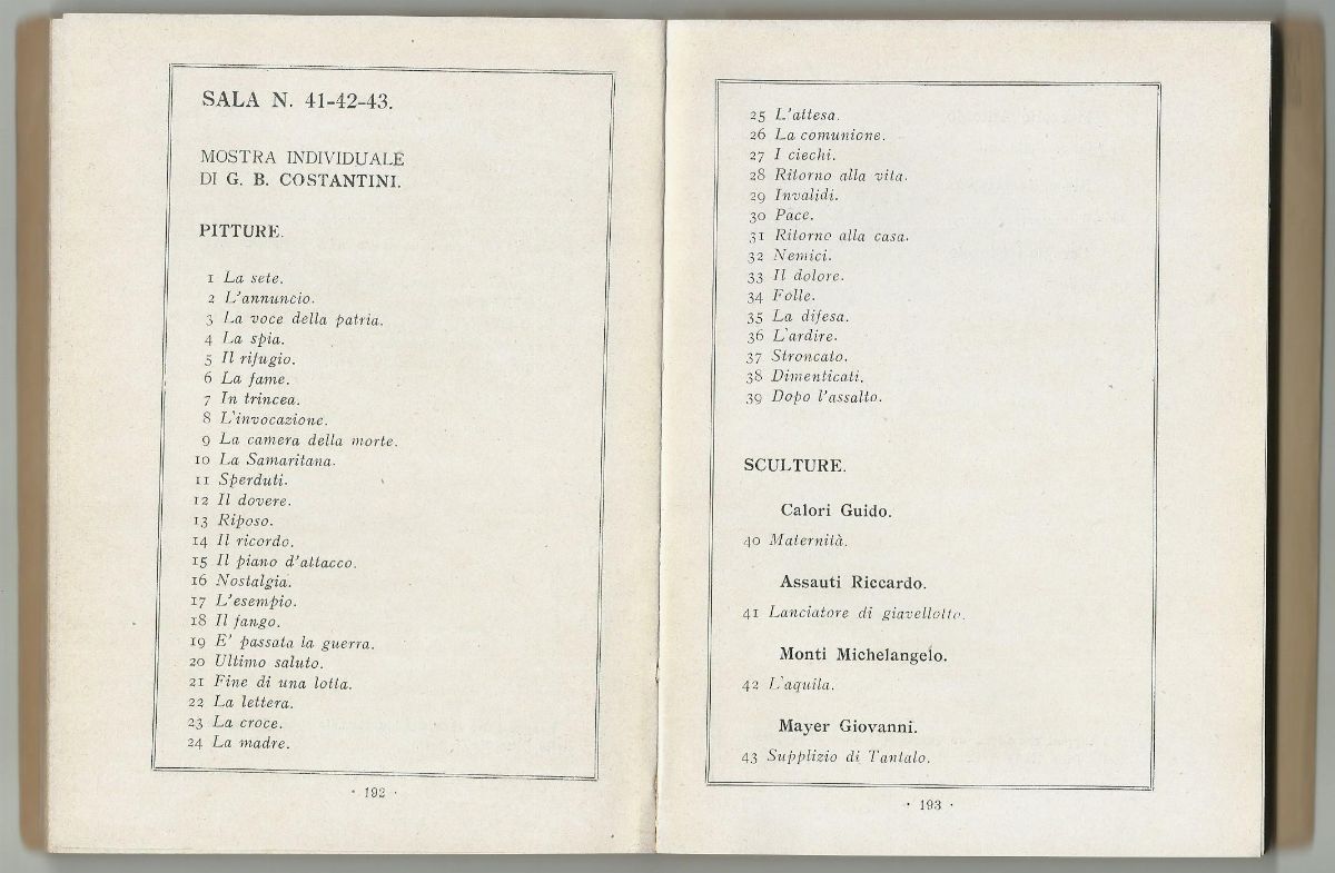 Prima Biennale Romana. Esposizione nazionale di Belle Arti nel cinquantenario della capitale, catalogo, pp. 192-193 n. 35 (La difesa).