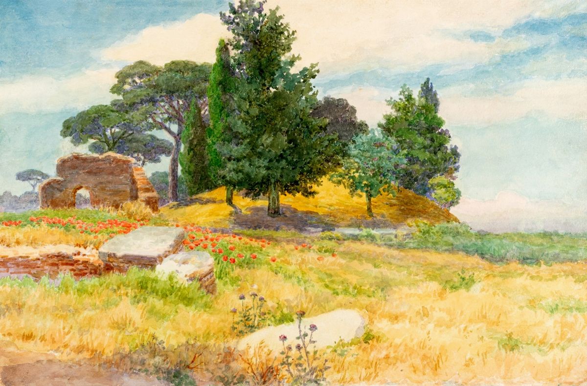 b) Campagna Romana con ruderi e il Monte Cavo