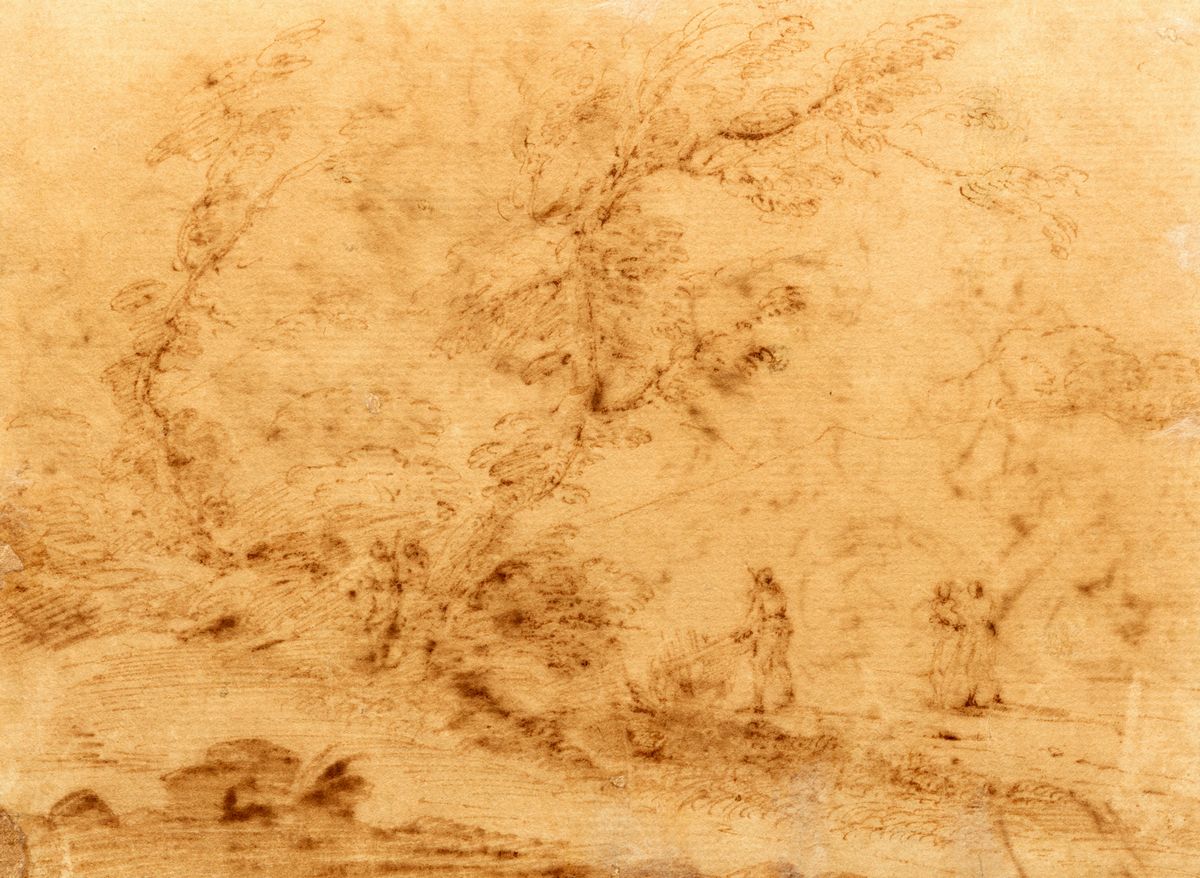 Studi di teste (recto); e studio di paesaggio con figure (verso)