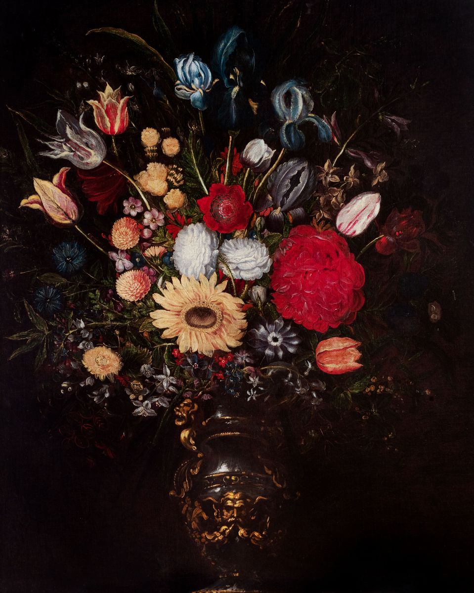 Sotto il nome di "Maestro del vaso a grottesche" è raccolto un corpus di opere eterogenee, raffiguranti trionfi di fiori, resi con ductus calligrafico, entro un vaso ornato da decorazioni classiche e spesso arricchito da manici elaborati di gusto manierista come quelli nei dipinti offerti nel lotto. In diversi centri d'Italia e d'oltralpe sono documentate opere simili, influenzate dalla moda del vaso all'antica a partire dalla fine del Cinquecento fino al secolo seguente.