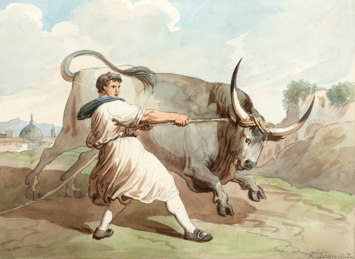 entrambi intitolati in basso al centro sul passepartout e firmati e datati Pinelli 1818 Roma