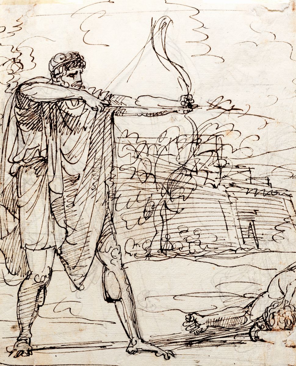 Sacra Famiglia con San Giovannino in un paesaggio (recto); e Studio di arciere (verso)
