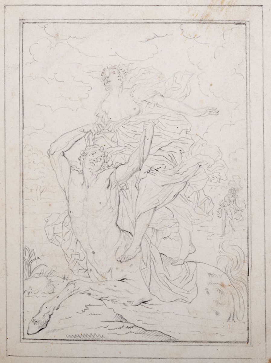 nel lotto anche un disegno da Guido Reni, secolo XVIII, il Ratto di Deianira; matita grigia su carta, mm 162 x 120