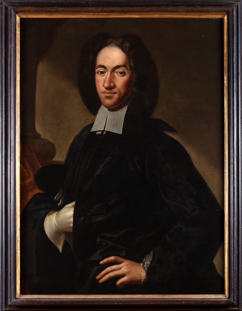 Il dipinto, tradizionalmente attribuito su basi stilistiche al “ritrattista di parata” Sebastiano Bombelli, raffigura un gentiluomo, la cui eleganza e la disinvolta sicurezza sottolineano lo status di notabile cittadino.