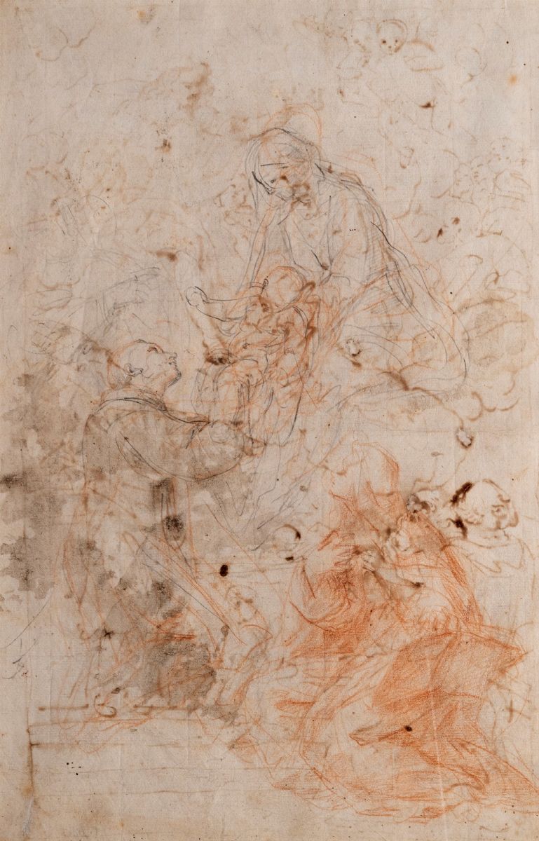 penna e inchiostro bruno, acquerello su carta (recto); matita grigia e rossa su carta (verso)