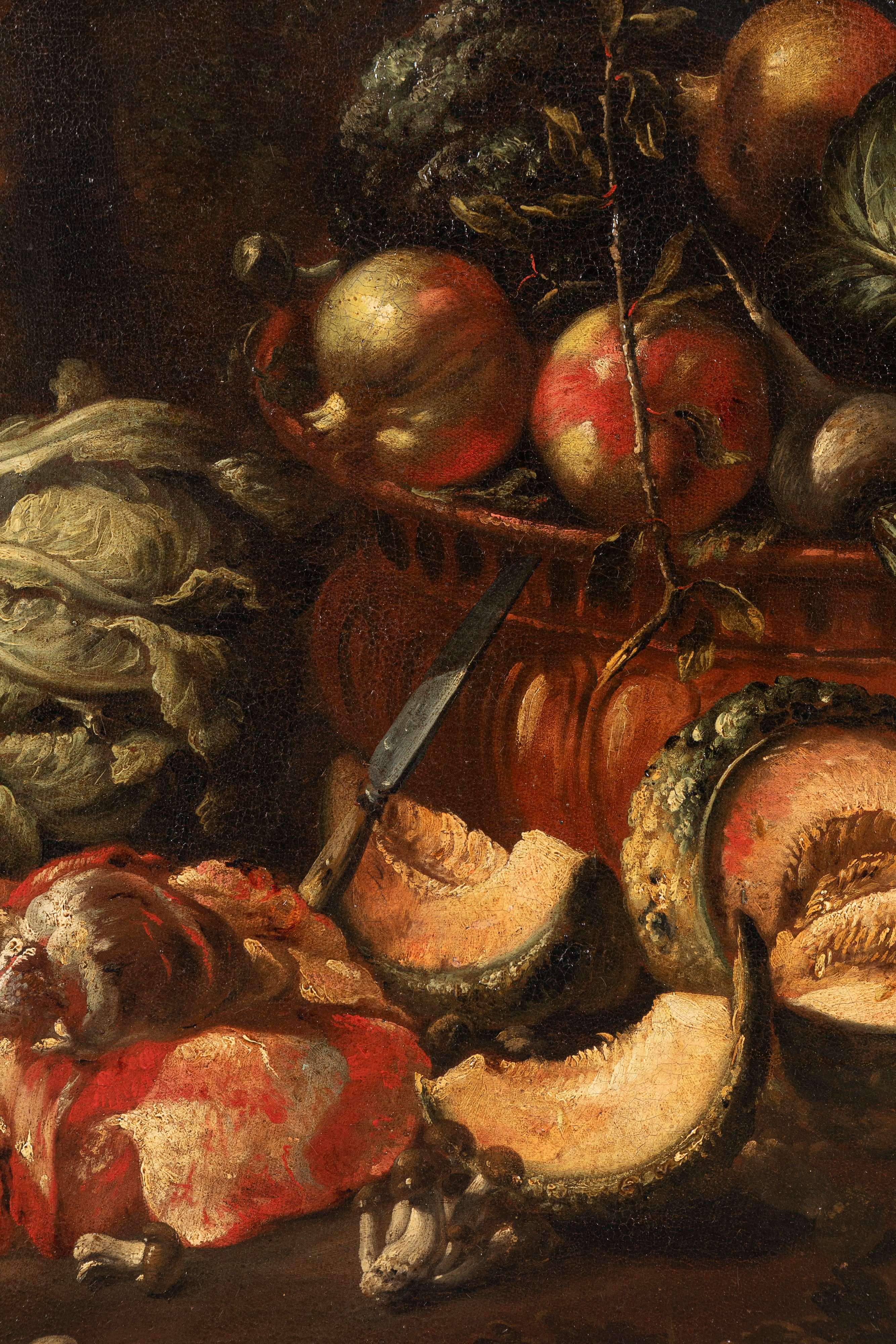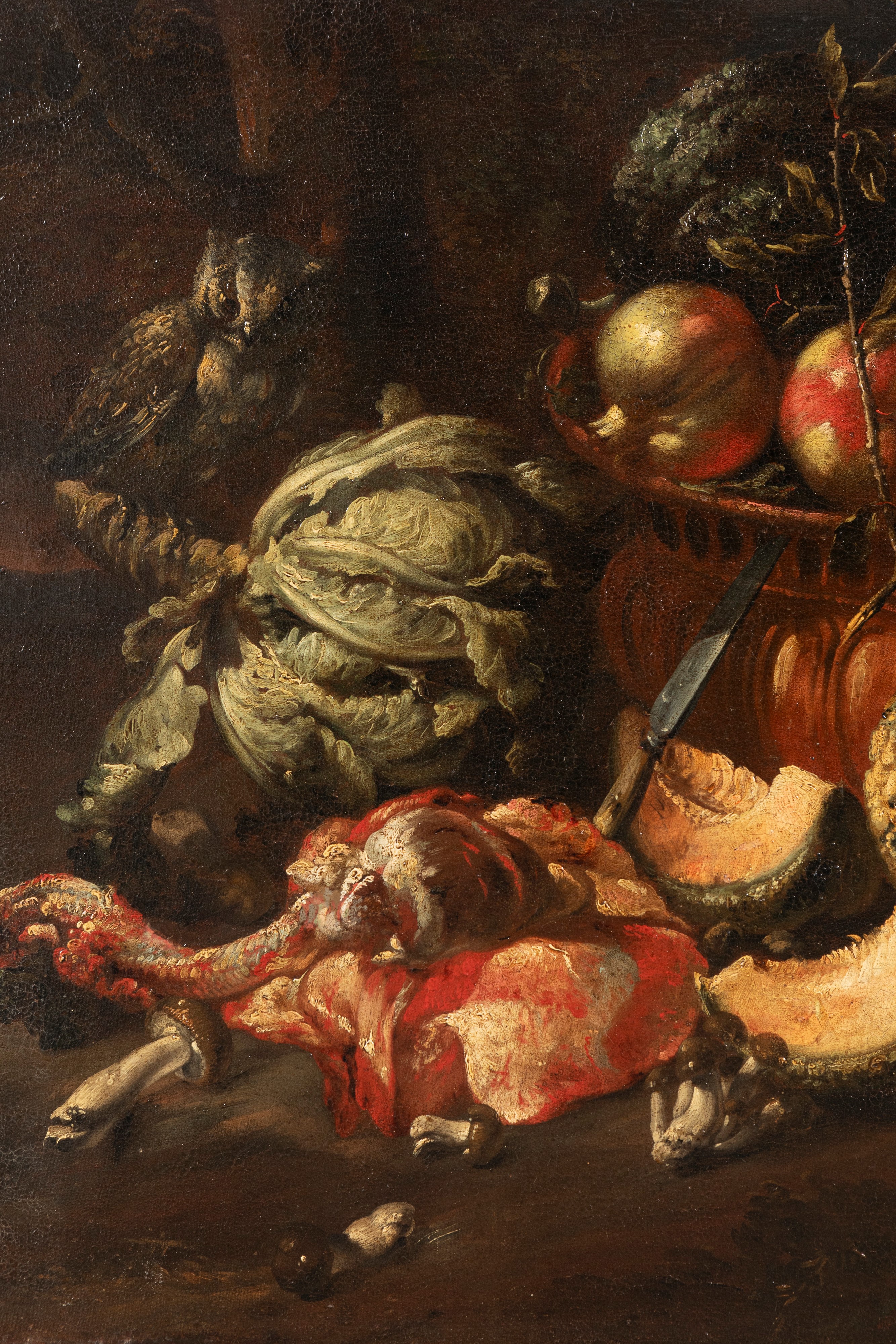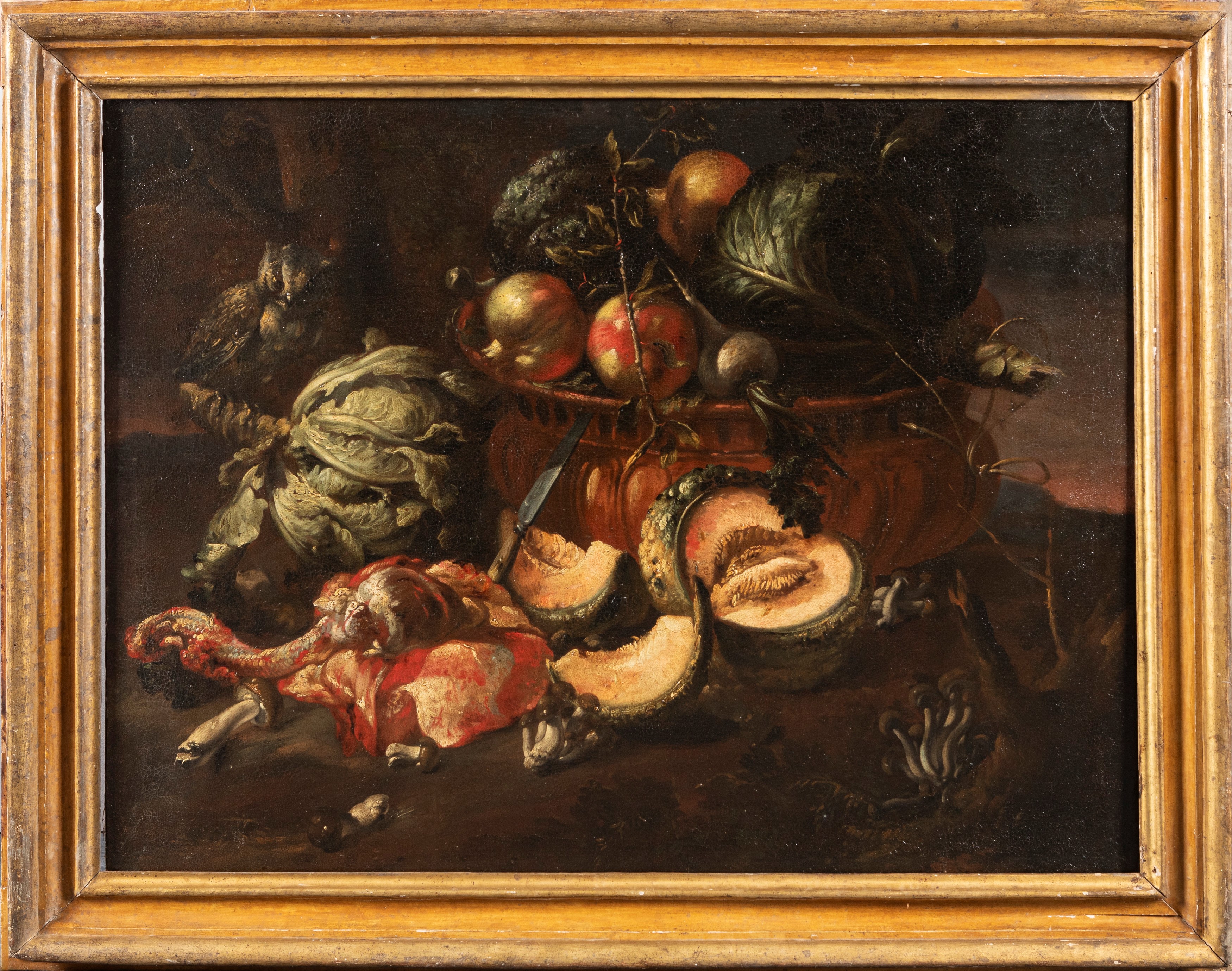 L'opera in esame (lotto 236) e il suo pendant (lotto 237), pubblicati da Ferdinando Arisi nel 1995 (F. Arisi, 1995, p. 154), sono indubbiamente altissimi esempi dell'arte del Boselli. Le due composizioni, dal notevole impatto visivo, presentano gli elementi più tipici del repertorio del pittore piacentino che, anche qui, appare "affollato" di carni macellate, cacciagione, frutta e verdura - quasi sue firme stilistiche - trattate con una essenziale ma felice adesione alla realtà. I dipinti coniugano alla perfezione due tratti principali della sua pittura: da un lato la grande abilità tecnica e l'alta qualità pittorica, evidenti nella perfetta resa mimetica, dall'altro il trionfale, ma mai eccessivo, decorativismo barocco.