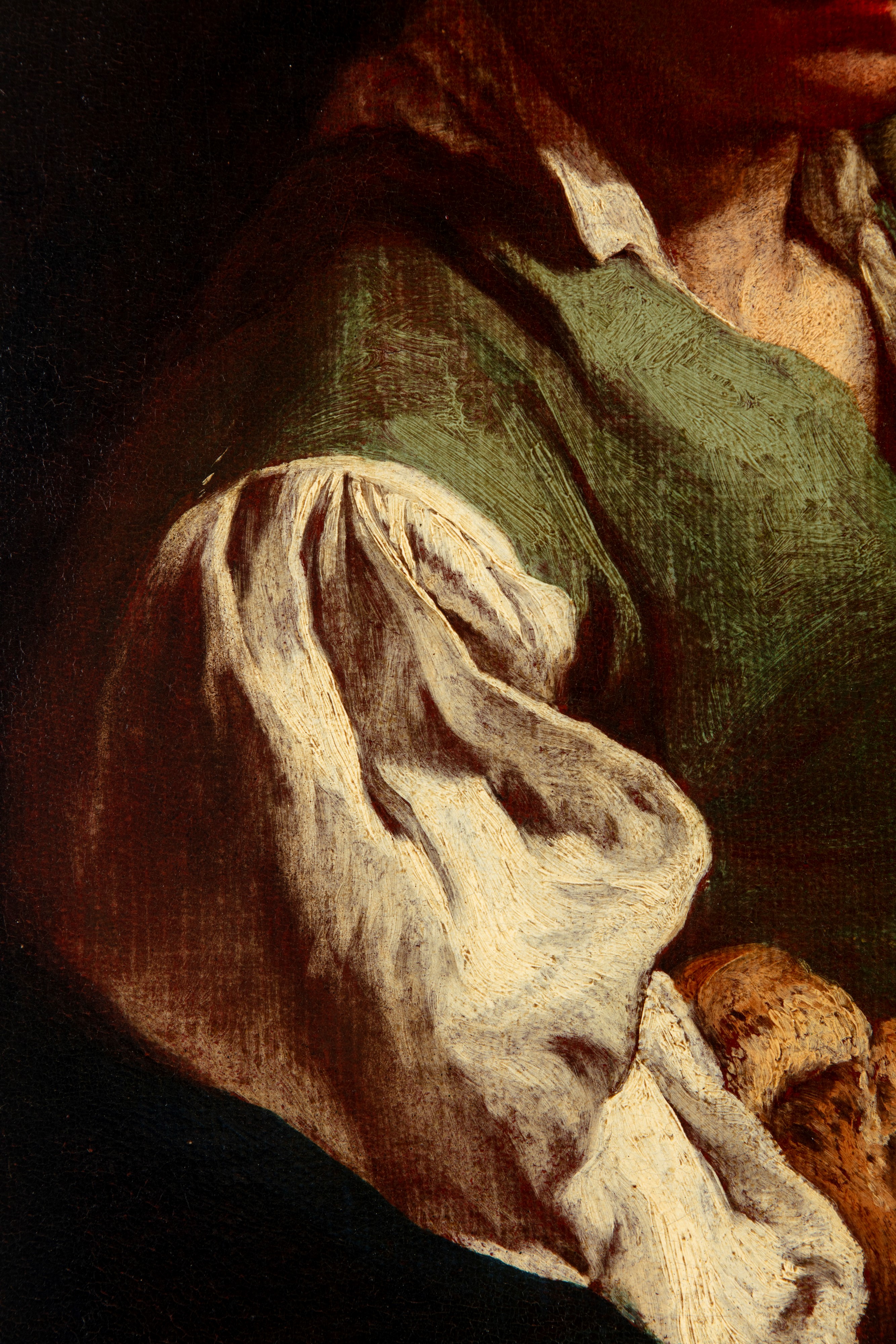 George Knox, nella pubblicazione più recente, pone in relazione il dipinto con altri raffiguranti lo stesso giovane modello, da identificarsi con il figlio maggiore di Piazzetta, Giacomo. In particolare il Giovane pellegrino, oggi conservato a Chicago, Art Institute, databile al 1738, è interpretato da Knox proprio come ritratto del giovane Giacomo, tredicenne all'epoca in cui fu dipinto, nelle vesti di pellegrino verso Santiago di Compostela. Rappresenterebbe, quindi, metaforicamente, l'adolescente che si incammina nel pellegrinaggio della vita, sotto la protezione del suo santo omonimo e patrono. Piazzetta ritrasse il figlio anche in altri dipinti di simile soggetto e formato, ad esempio nel Giovane alfiere, oggi a Dresda, Gemaeldegalerie, e il Giovane con filo di perle (Hehlen, Schulenburg collection), tutti databili all'inizio del quinto decennio del Settecento, come quello qui presentato.