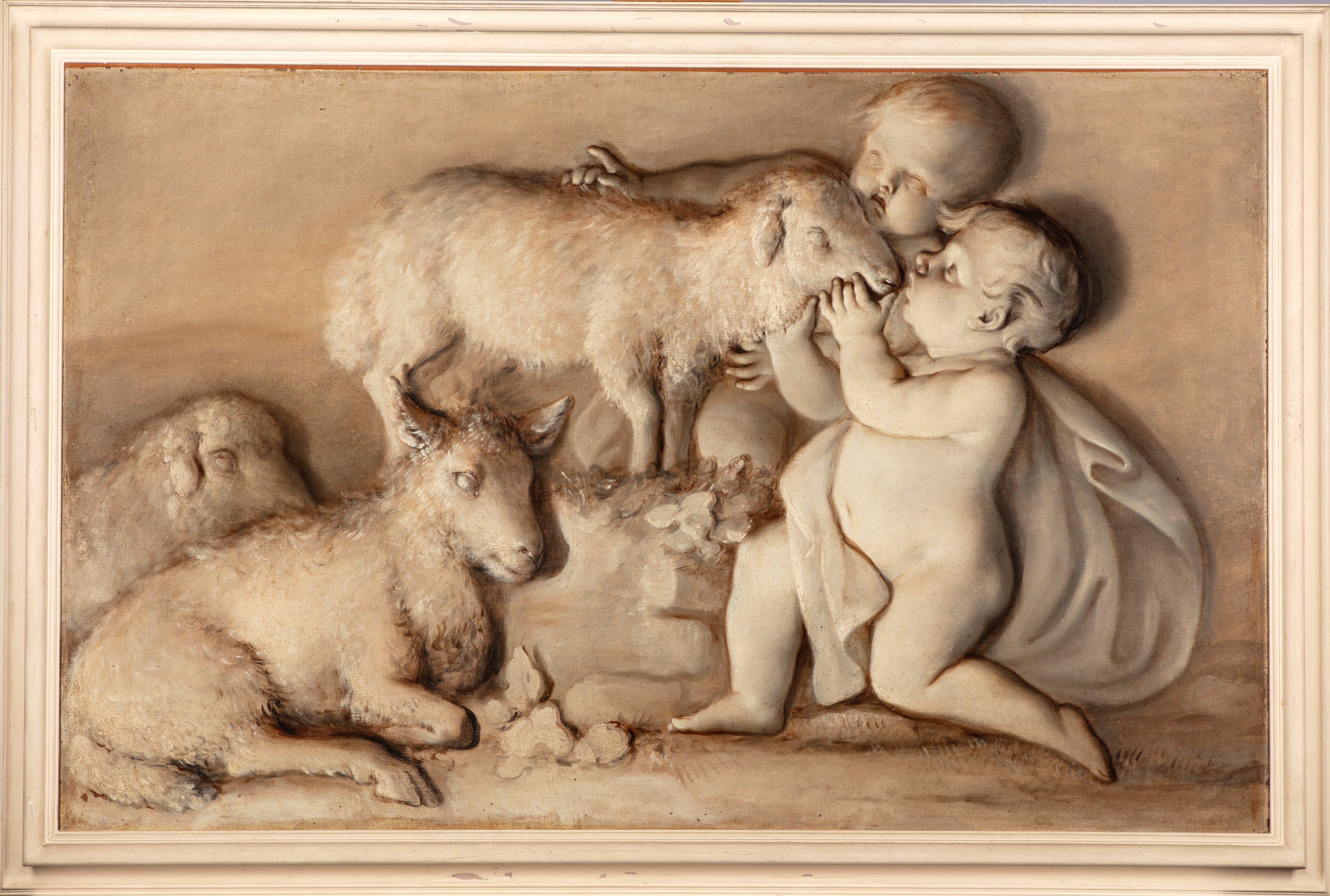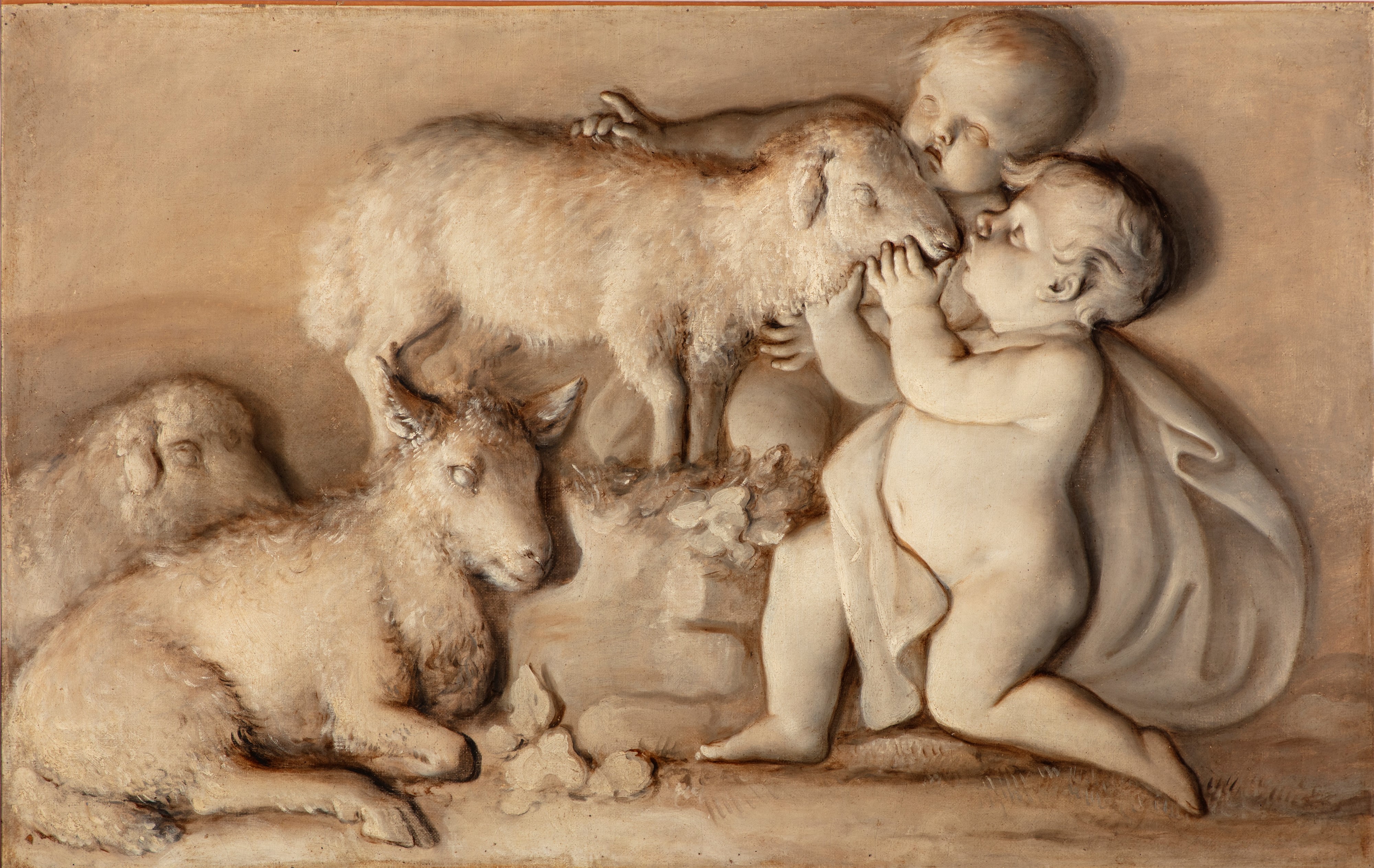 coppia, olio su tela, in monocromo