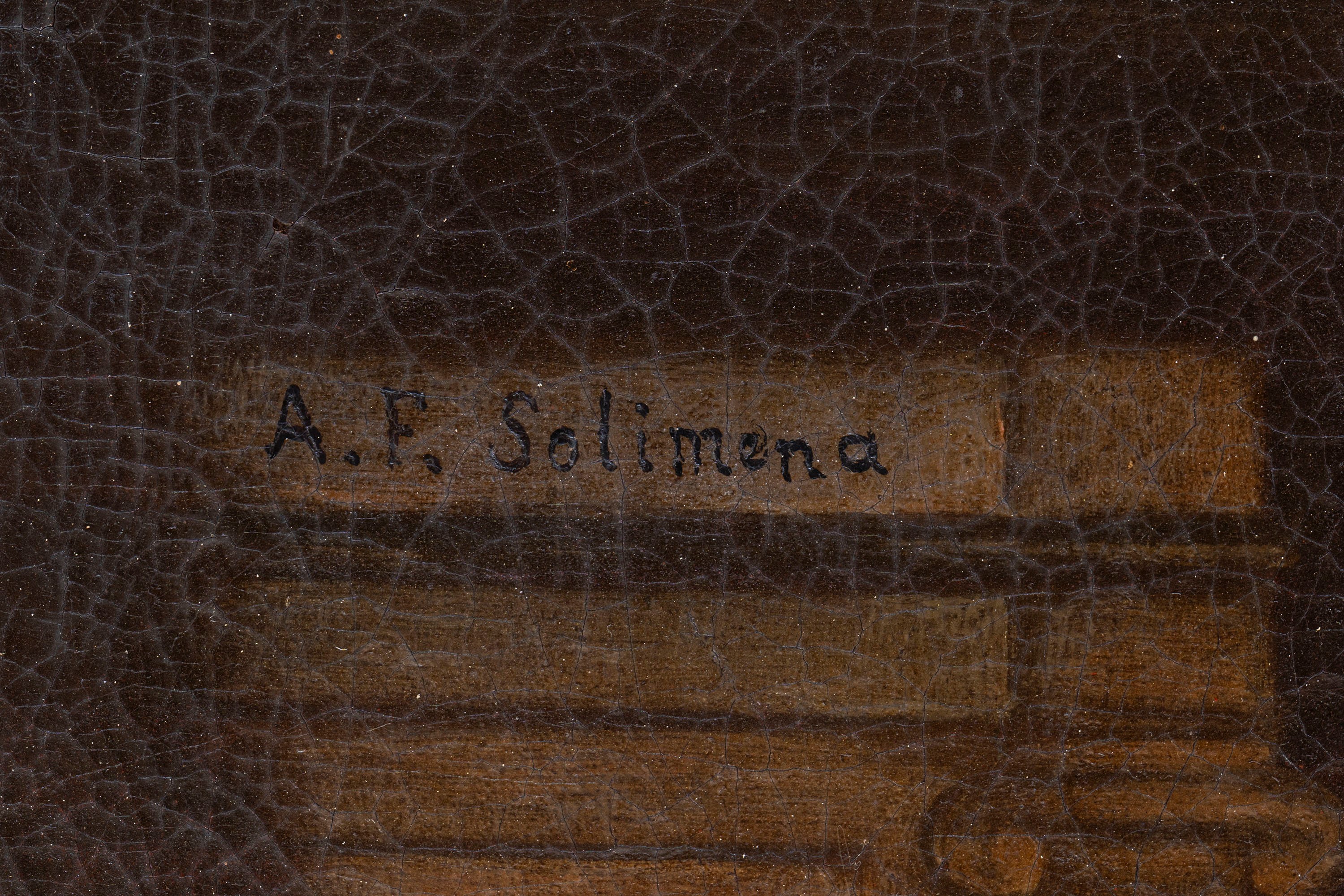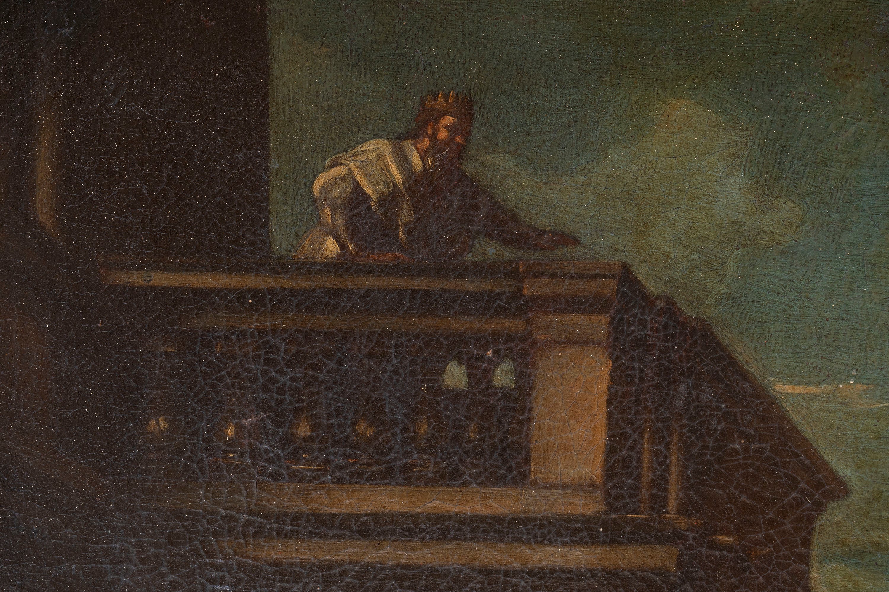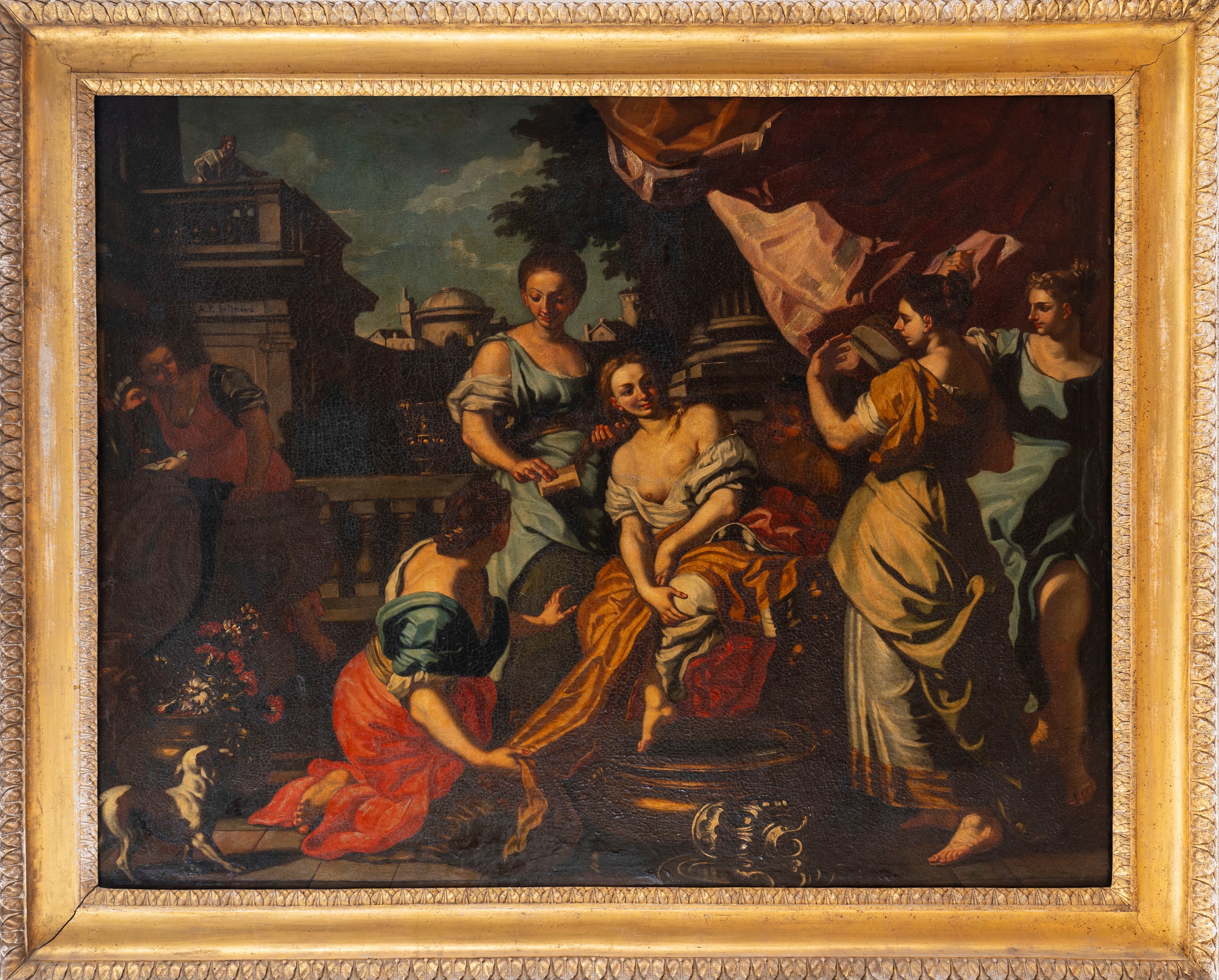 Il dipinto offerto nel lotto trova un confronto con il prototipo di Solimena, di cui esistono almeno tre versioni: una a Salisburgo, Residenzgalerie, da cui si differenzia per alcuni dettagli, soprattutto nella fisionomia e nelle vesti di Betsabea e dell'ancella a sinistra; una al museo di Richmond in Virginia e una, più vicina all'esemplare qui presentato, conservata a Aranujez, Palazzo Reale.