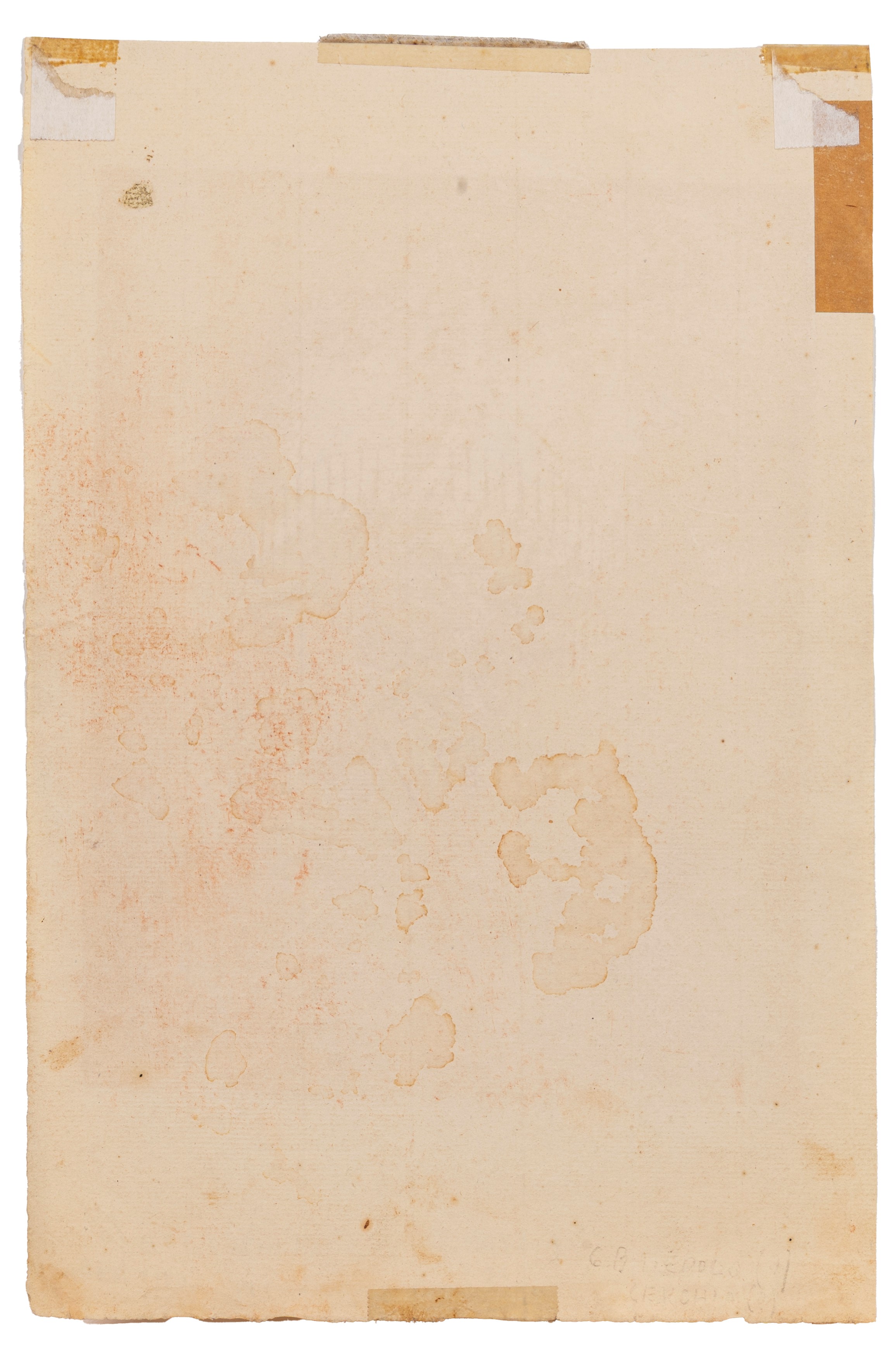 annotazione moderna del collezionista a matita in basso a destra FIGURA DI / SANTO PIAZZETTA (?) / IN CONTROPARTE