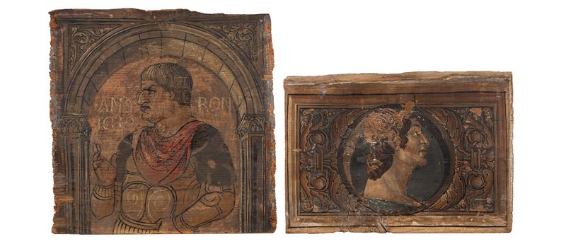 Quattro tavelle da soffitto con stemmi nobiliari