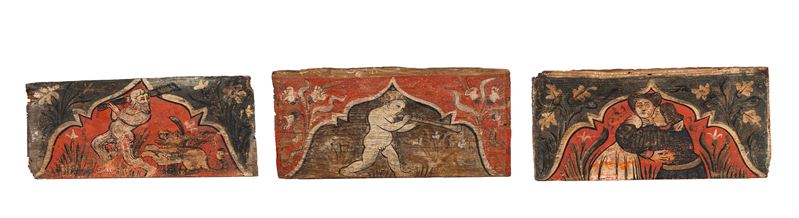 Tre tavelle da soffitto con animali araldici