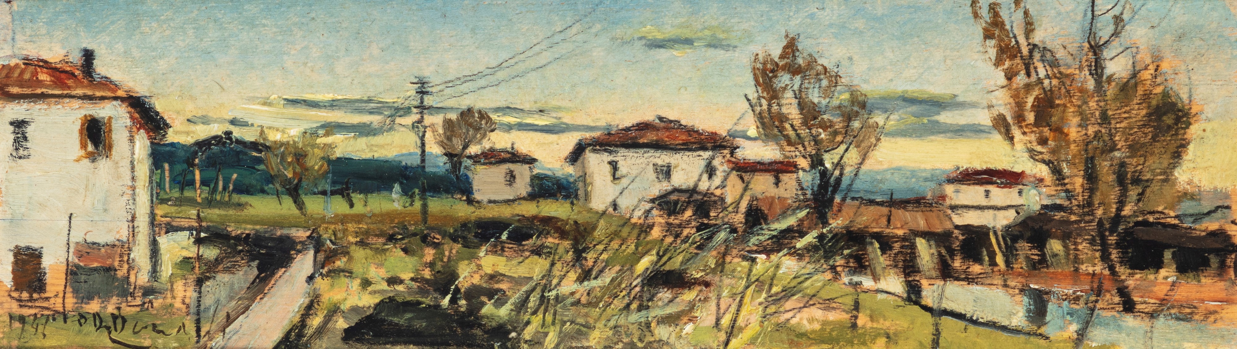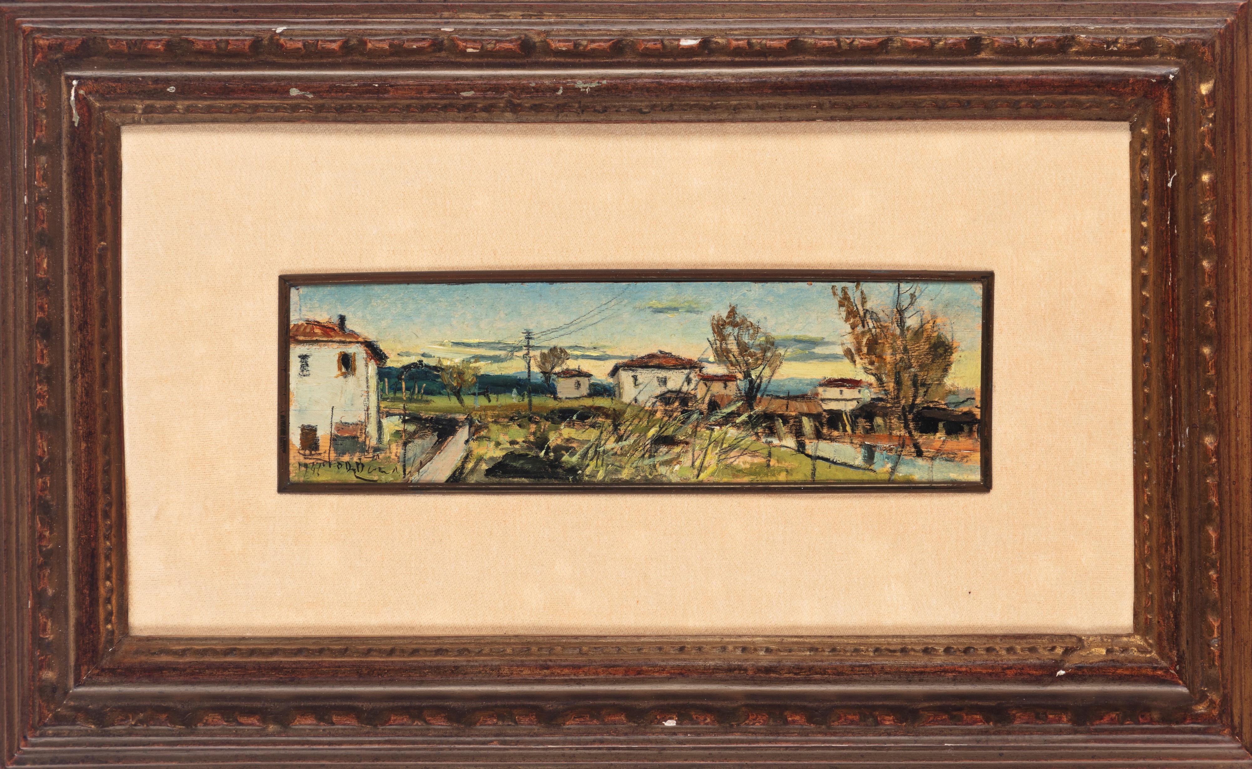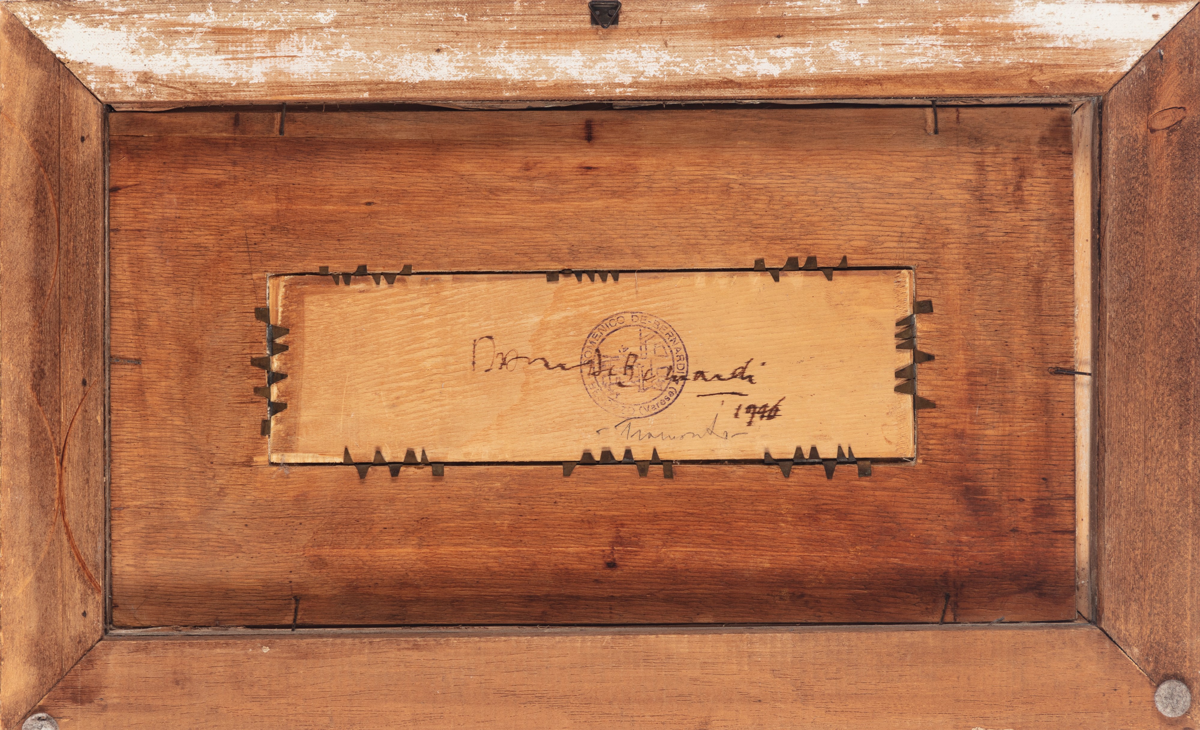 il Mattino firmato in basso a sinistra: D. De Bernardi; al retro, firmato e datato Domenico De Bernardi 1946 e timbro del pittore