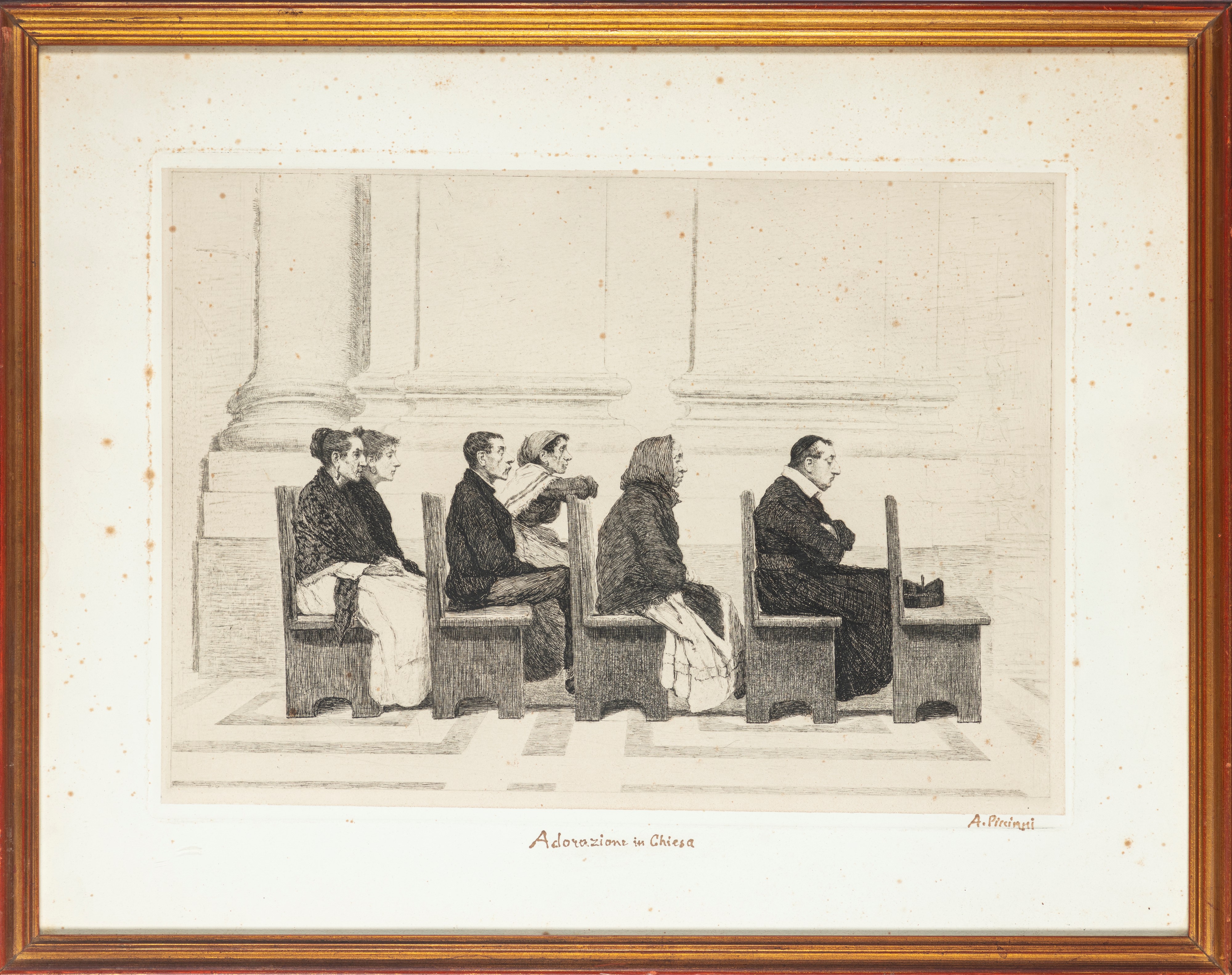 Questa acquaforte rappresenta un soggetto inciso da Piccinni, con alcune varianti, in altri tre esemplari conservati dalla Calcografia Nazionale e pubblicati nel catalogo generale (cfr. F. Fiorani (a cura di), Antonio Piccinni incisore. Catalogo Generale dell'Opera Grafica, Roma 2005, pp. 66, 70 e 80). L'acquaforte qui presentata costituirebbe quindi un inedito.