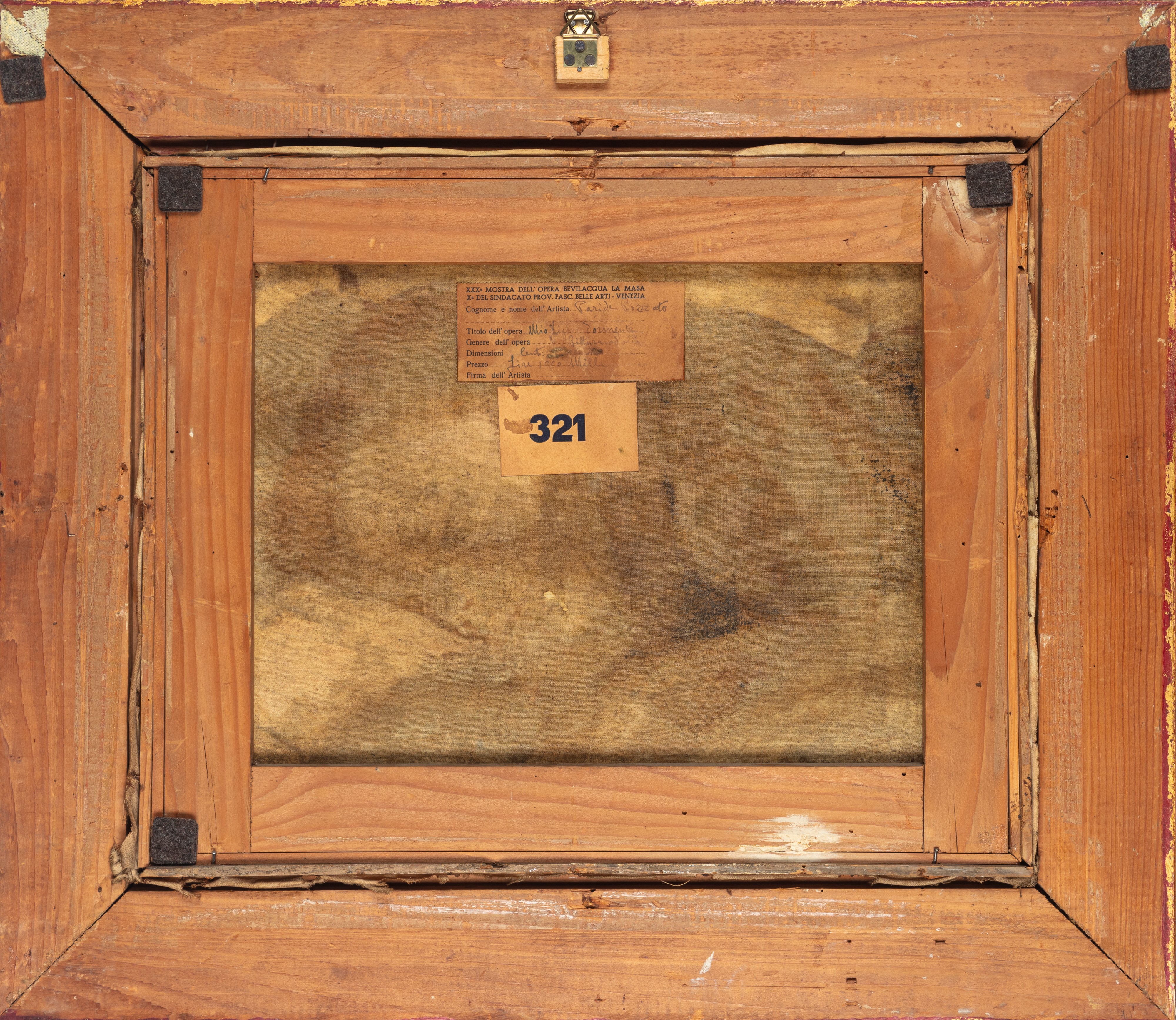 al retro, sulla tela, etichetta della XXX Mostra dell'Opera Bevilacqua La Masa / Xa del sindacato prov. fasc. Belle Arti-Venezia (n.321) con autore e titolo