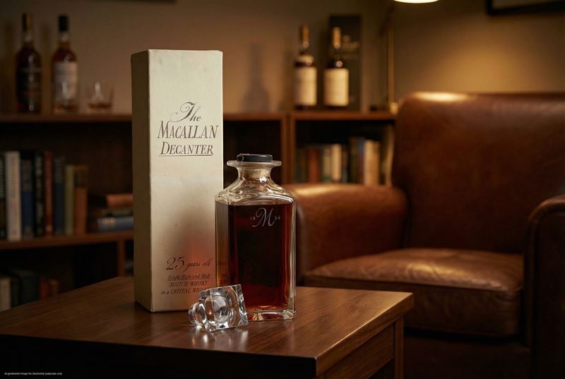 Macallan 25 Year Old Unblended Single Malt Scotch Whisky, Crystal Decanter
