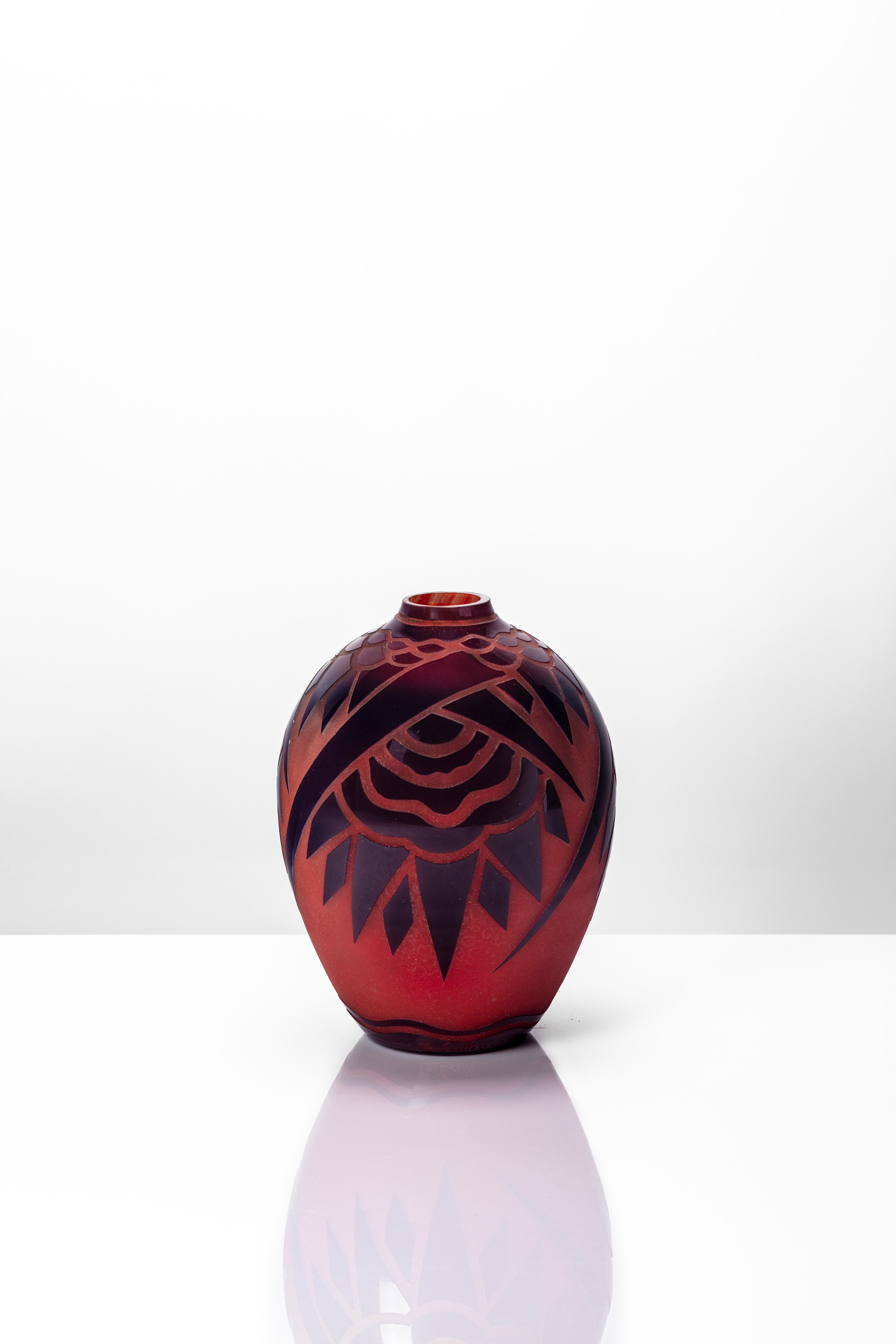 Vaso ovoidale monostrato inciso ad acido con decoro geometrico