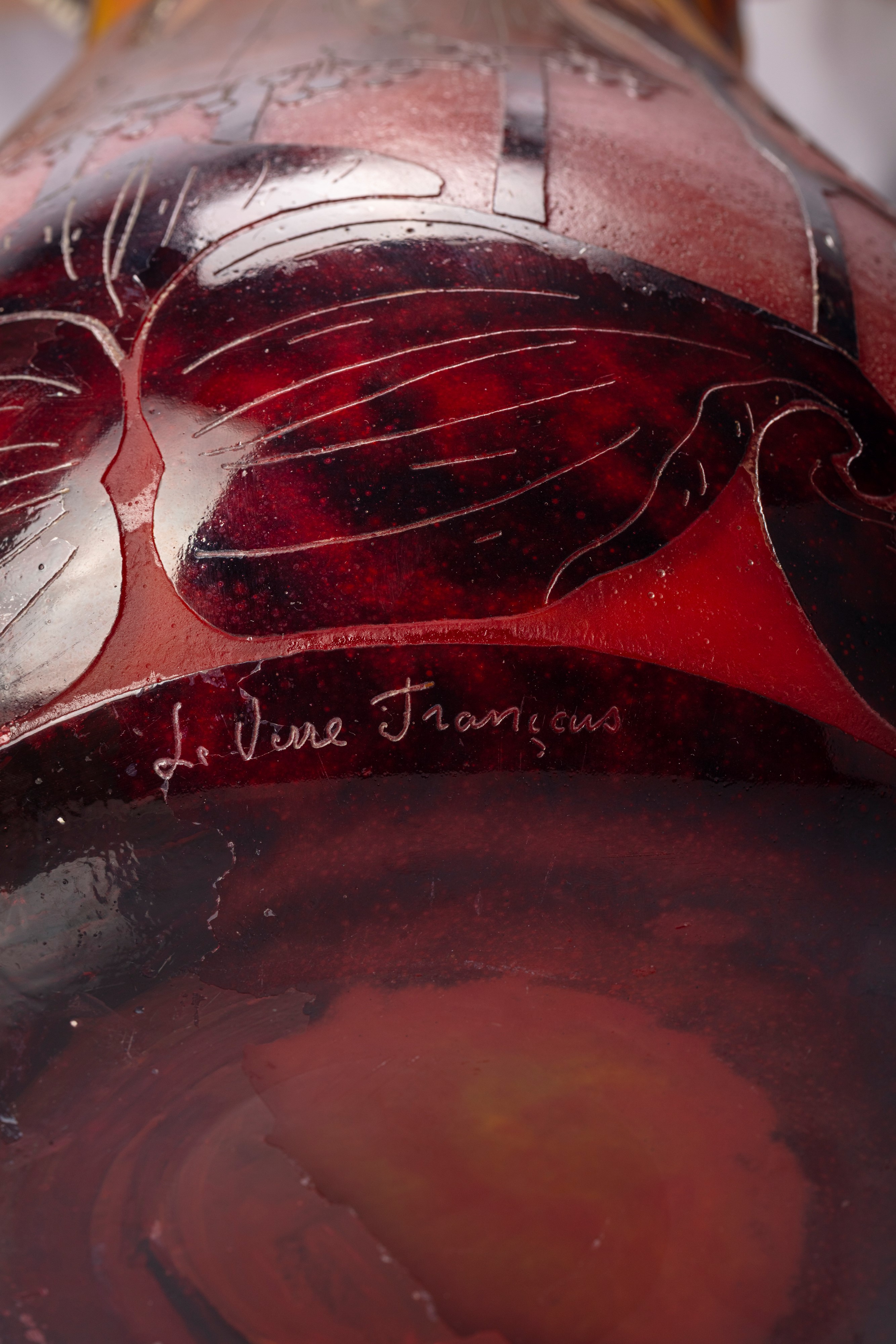 firma LE VERRE FRANCAIS incisa ad acido sulla base