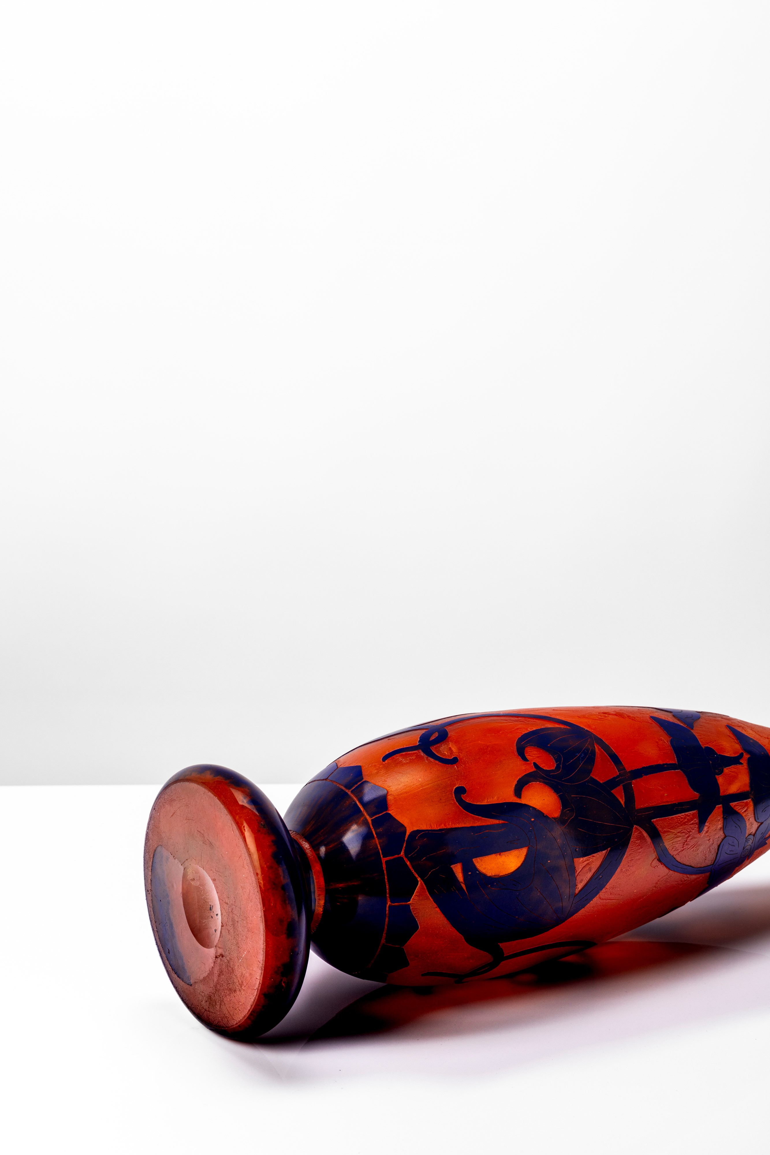 Vaso balaustro collo svasato inciso ad acido doppio strato con decoro floreale della serie Solaneés