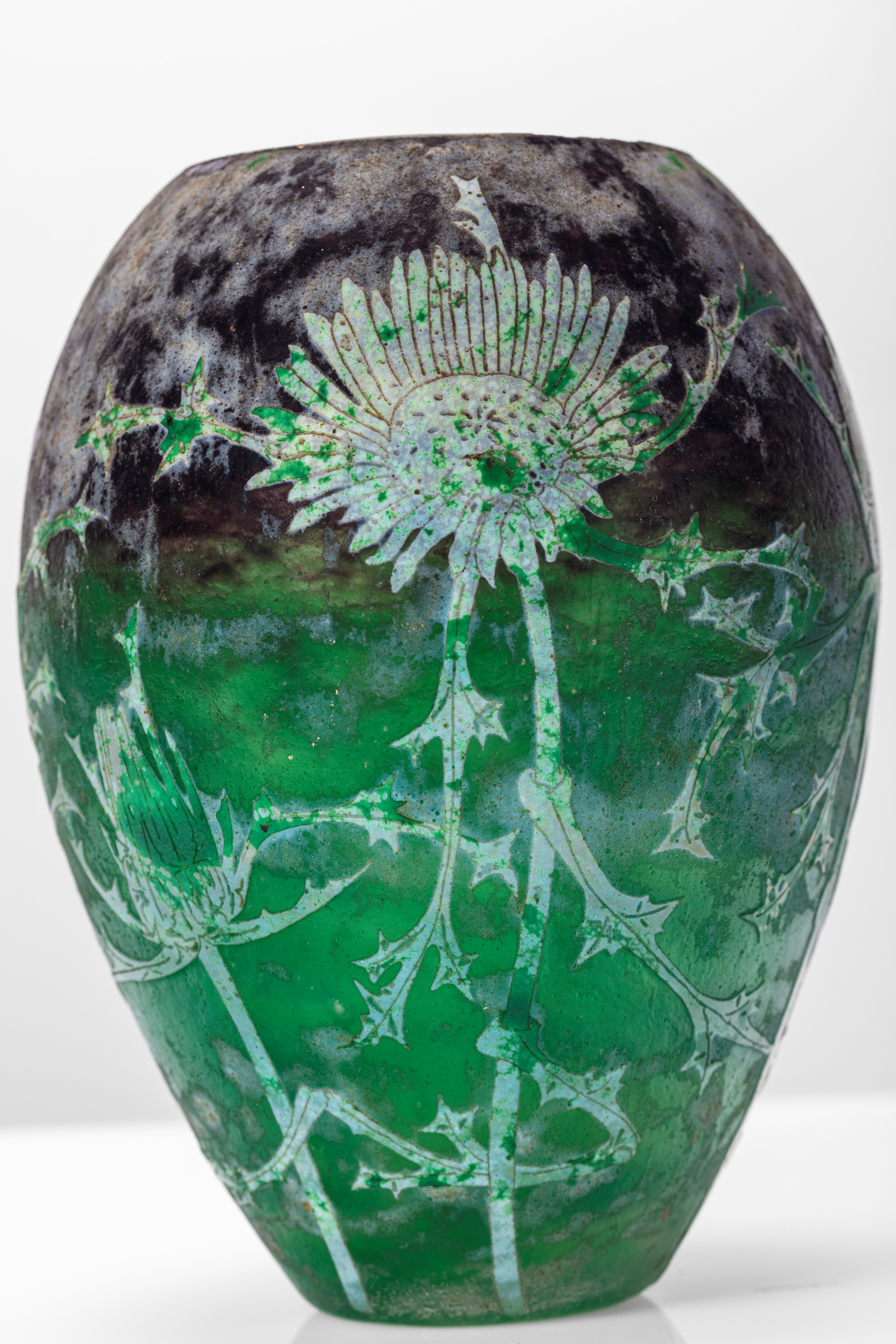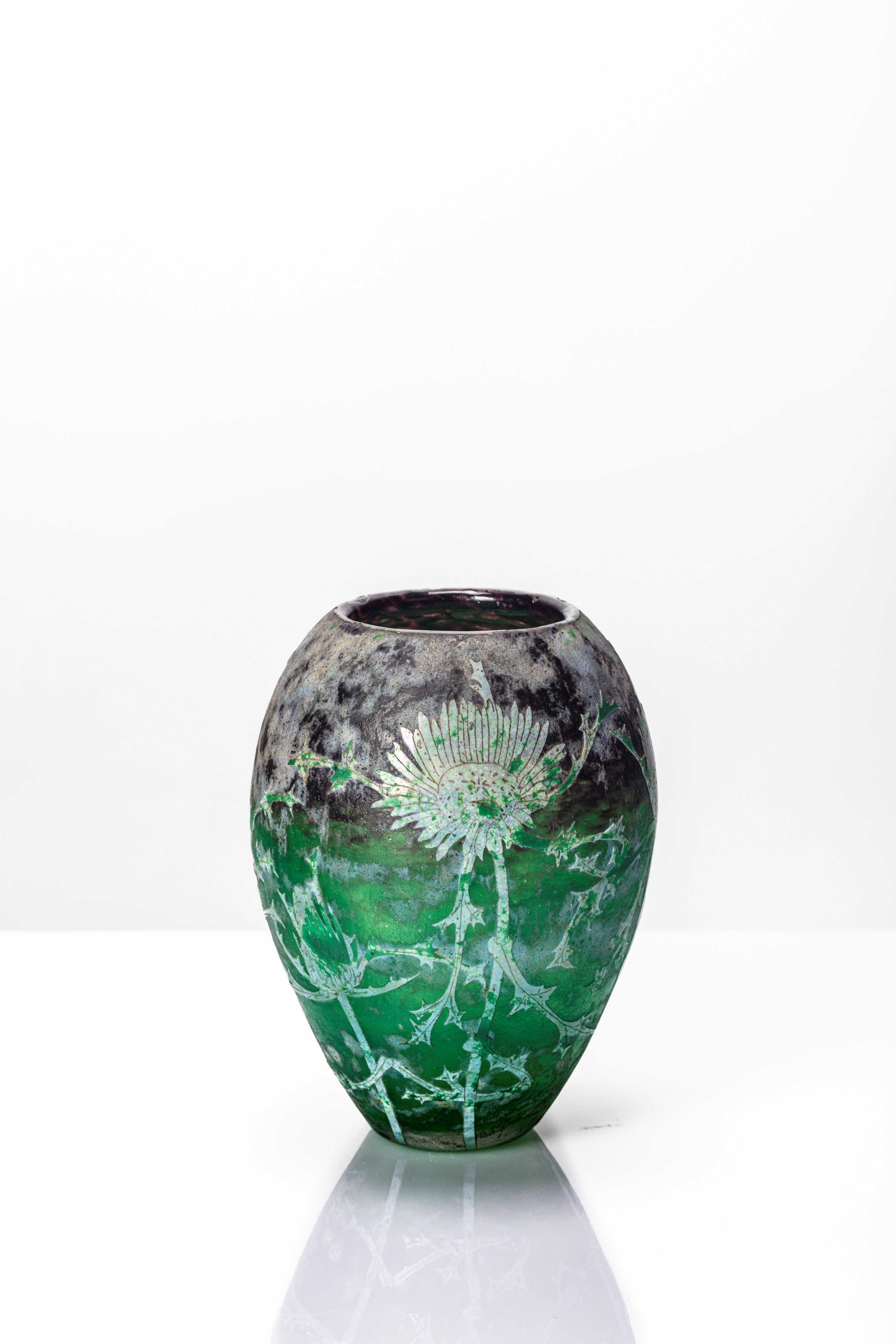 Vaso ovoidale inciso ad acido con decoro cardo di Lorena