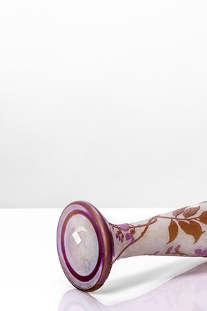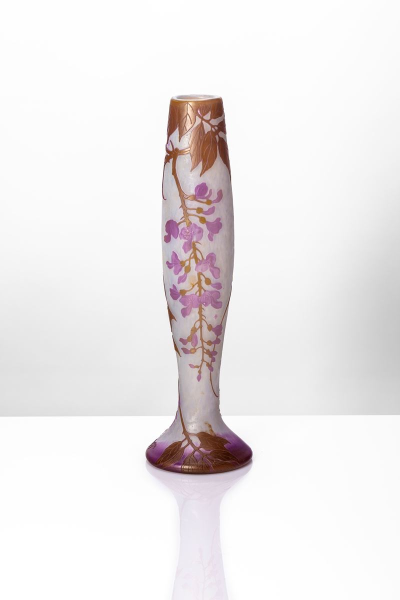 Vaso affusolato inciso ad acido con decoro di tralci di glicine