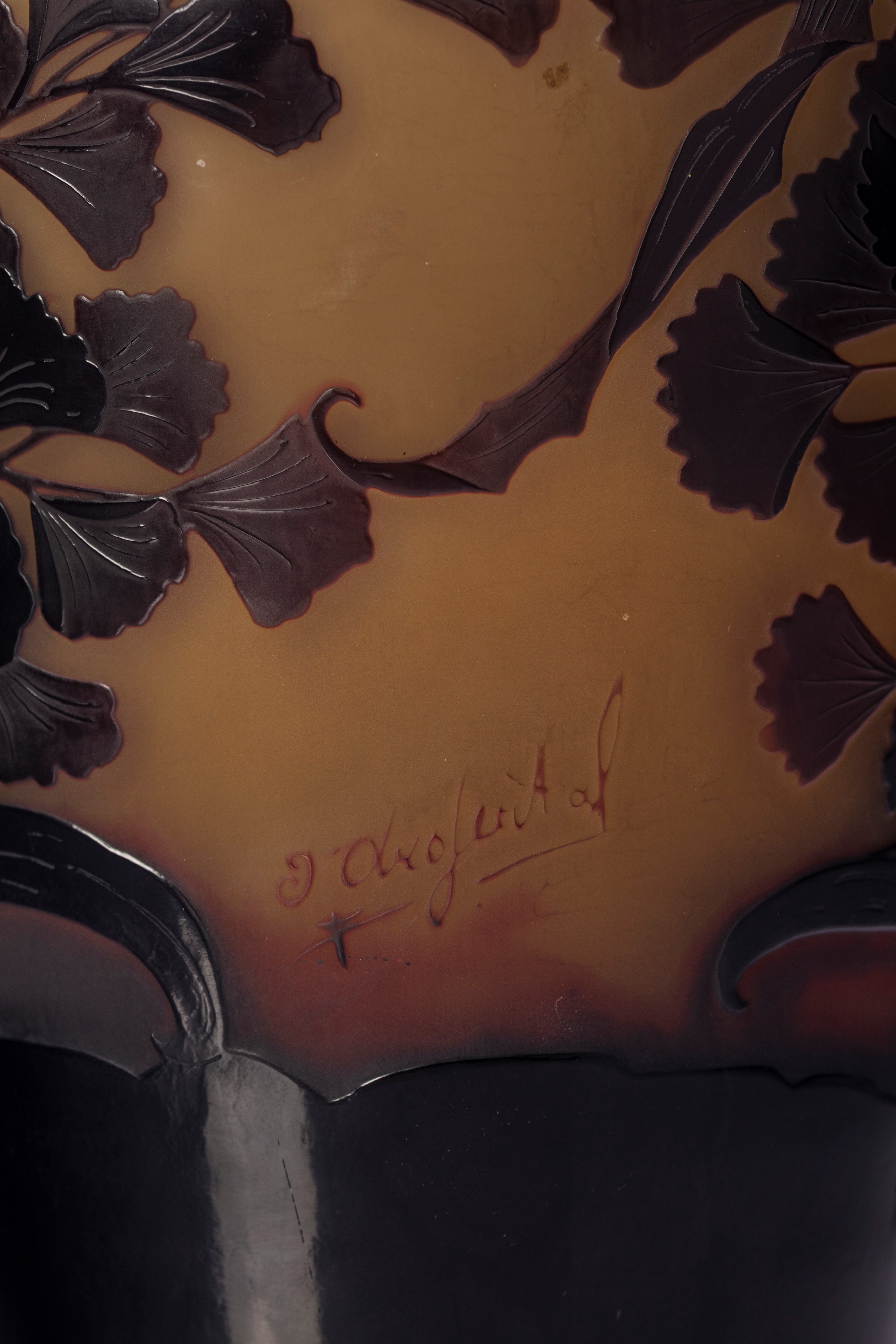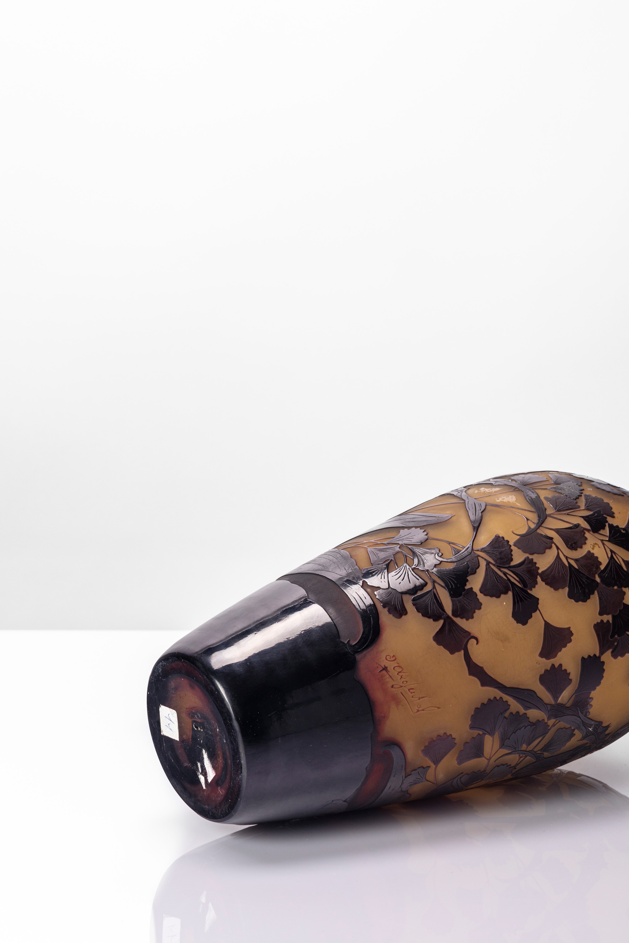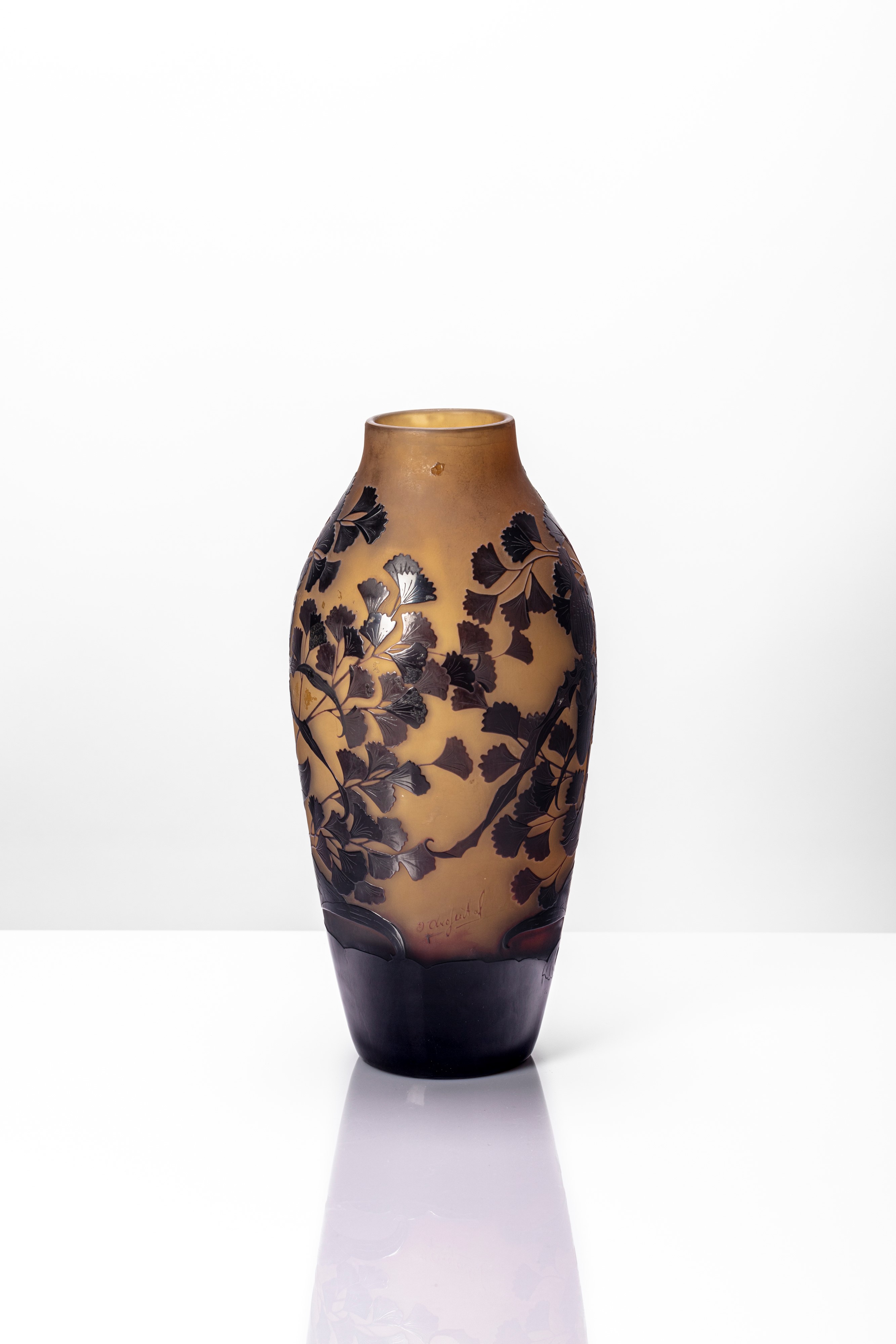 Vaso a pancia circolare dal collo rastremato inciso ad acido doppio strato con decoro floreale