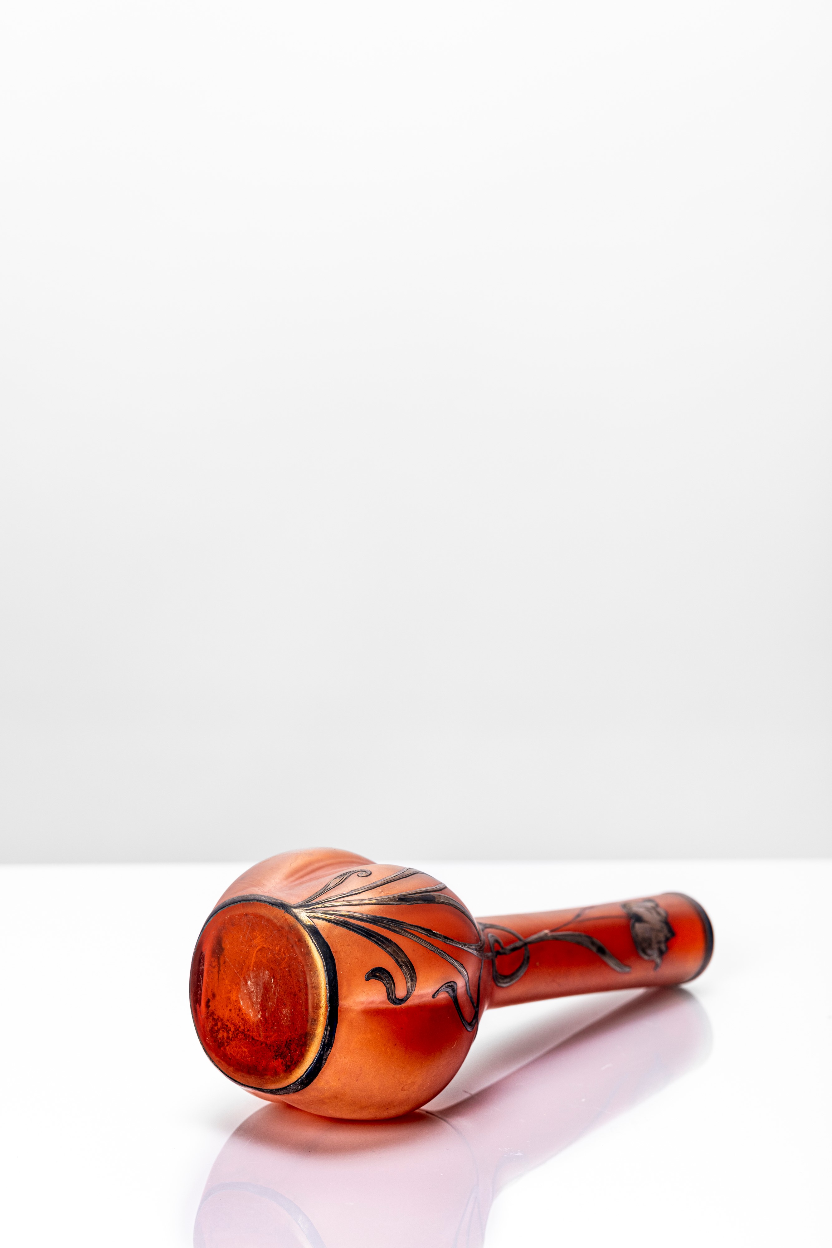 Vaso a pancia costolata inciso ad acido con decoro solifleur papavero