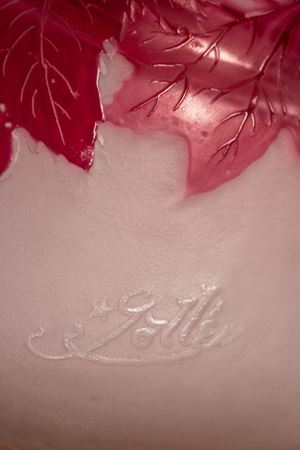 Vaso rastremato verso l'alto base circolare inciso ad acido doppio strato con decoro di bacche e vite selvatica