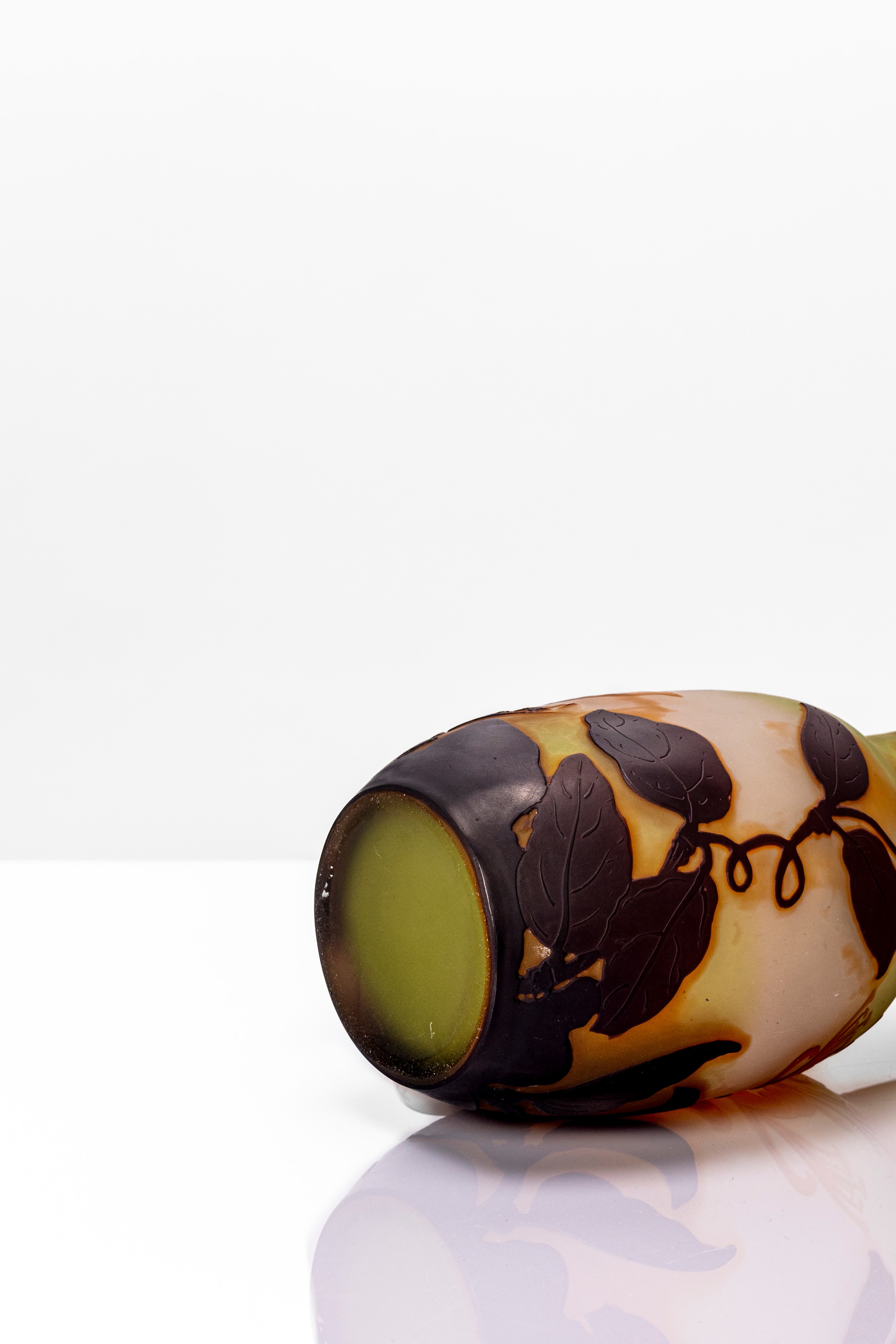 Vaso a pancia schiacciata collo divergente inciso ad acido triplo strato con decoro floreale