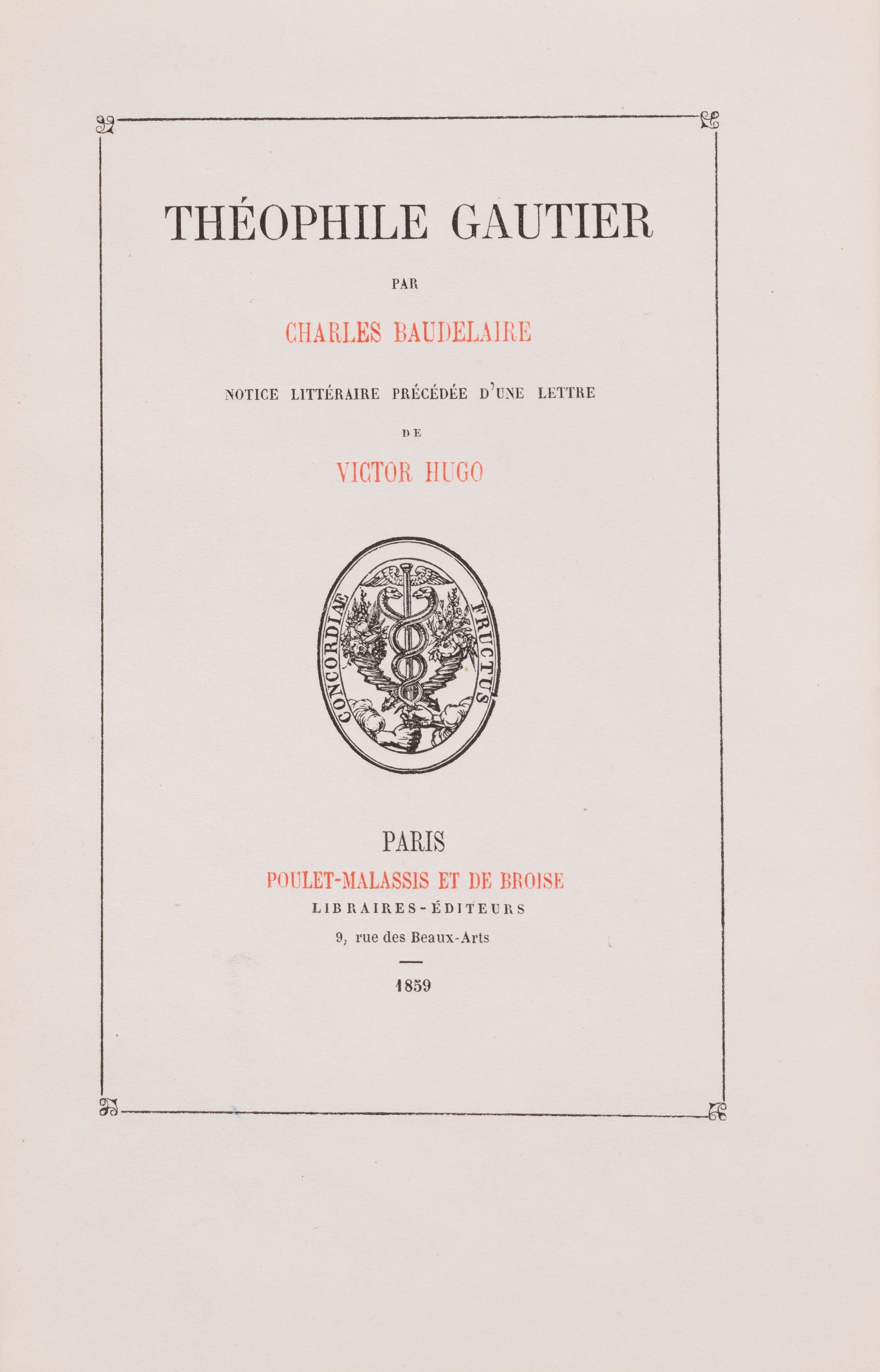 Théophile Gautier par Charles Baudelaire. Notice littéraire précédée d’une lettre de Victor Hugo, 1859