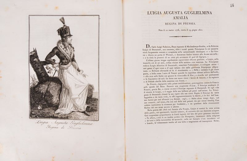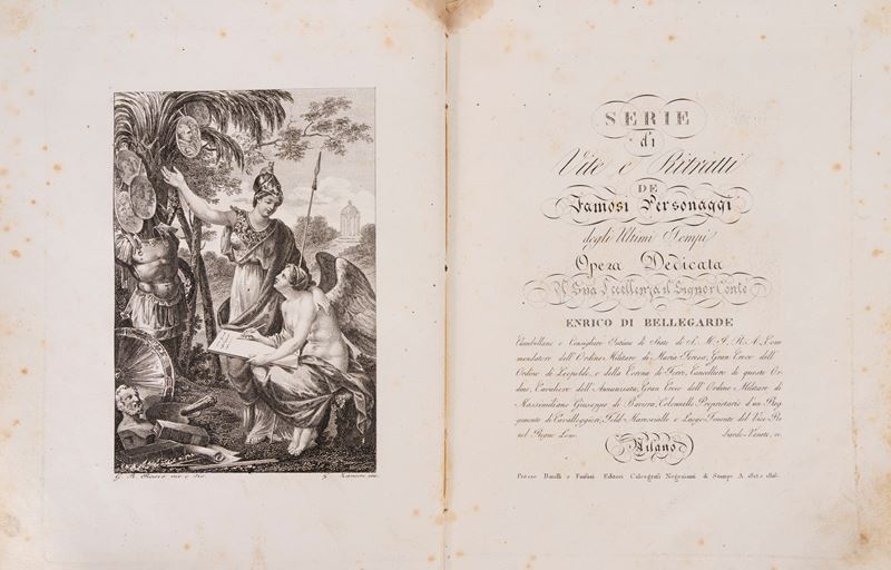 Milano, Batelli e Fanfani, 1815-18. In 4°. 3 voll. Antiporta e numerosi ritratti a piena pagina incisi in rame, lievi fioriture marginali, al III vol. qualche fascicolo allentato e una carta staccata, legatura coeva in mezzo chagrin con angoli, sciupate e con difetti.