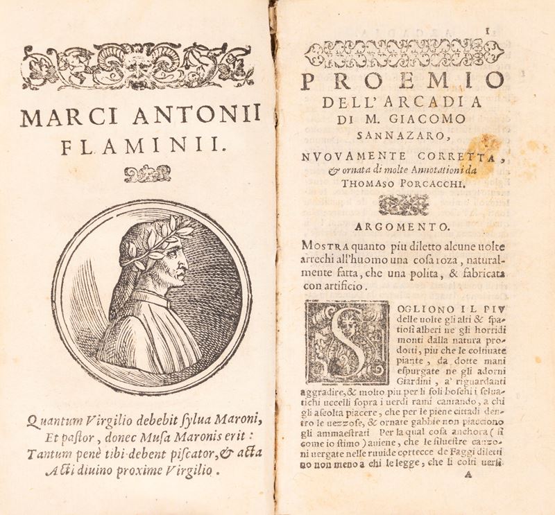 Venezia, appresso Gabriel Giolito De' Ferrari, 1568. In 12°. Frontespizio ornato da frego e marca tipografica, testatine e capilettera xilografici, prima carta semi staccata dal dorso. Legatura in pergamena, titolo al dorso, lievi difetti.