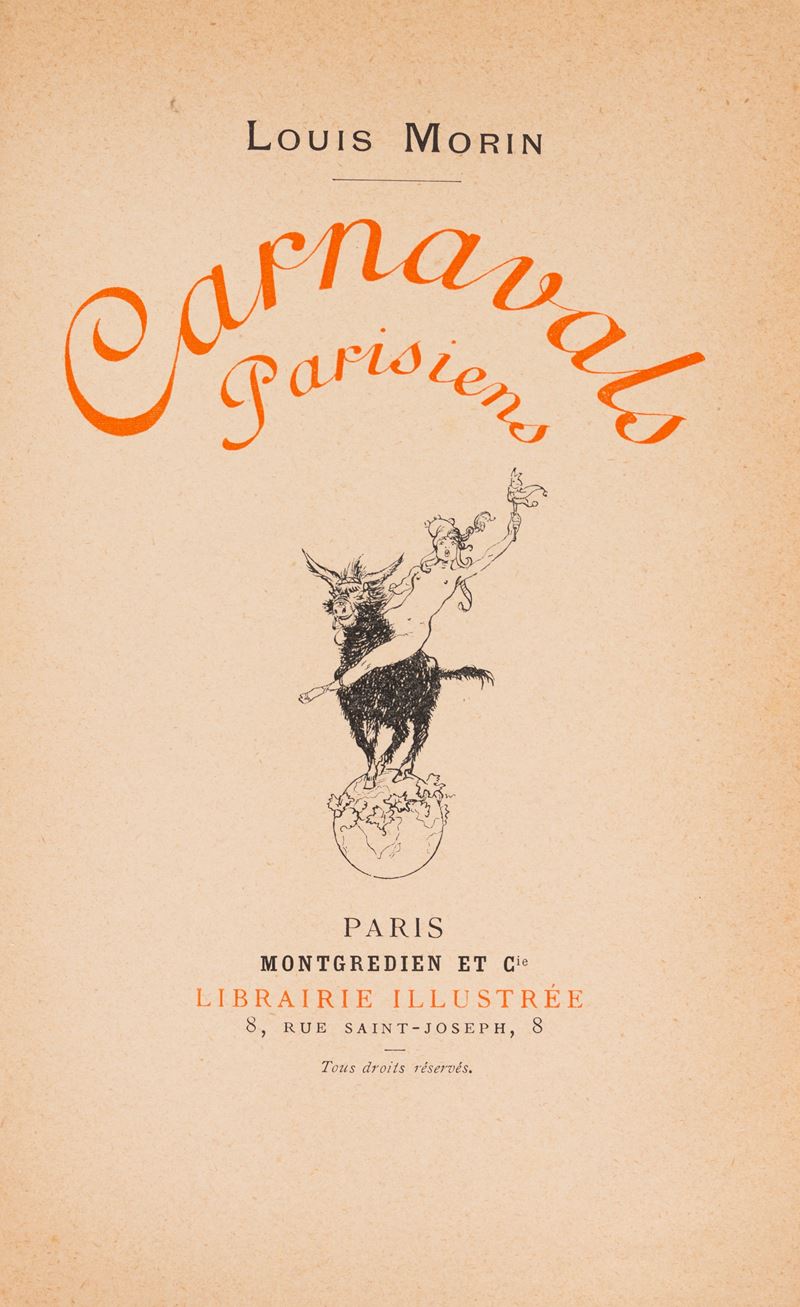 Raro e divertente libro illustrato sulle feste di carnevale a Parigi, in particolare nella zona di Montmartre. Tiratura di 125 esemplari.
