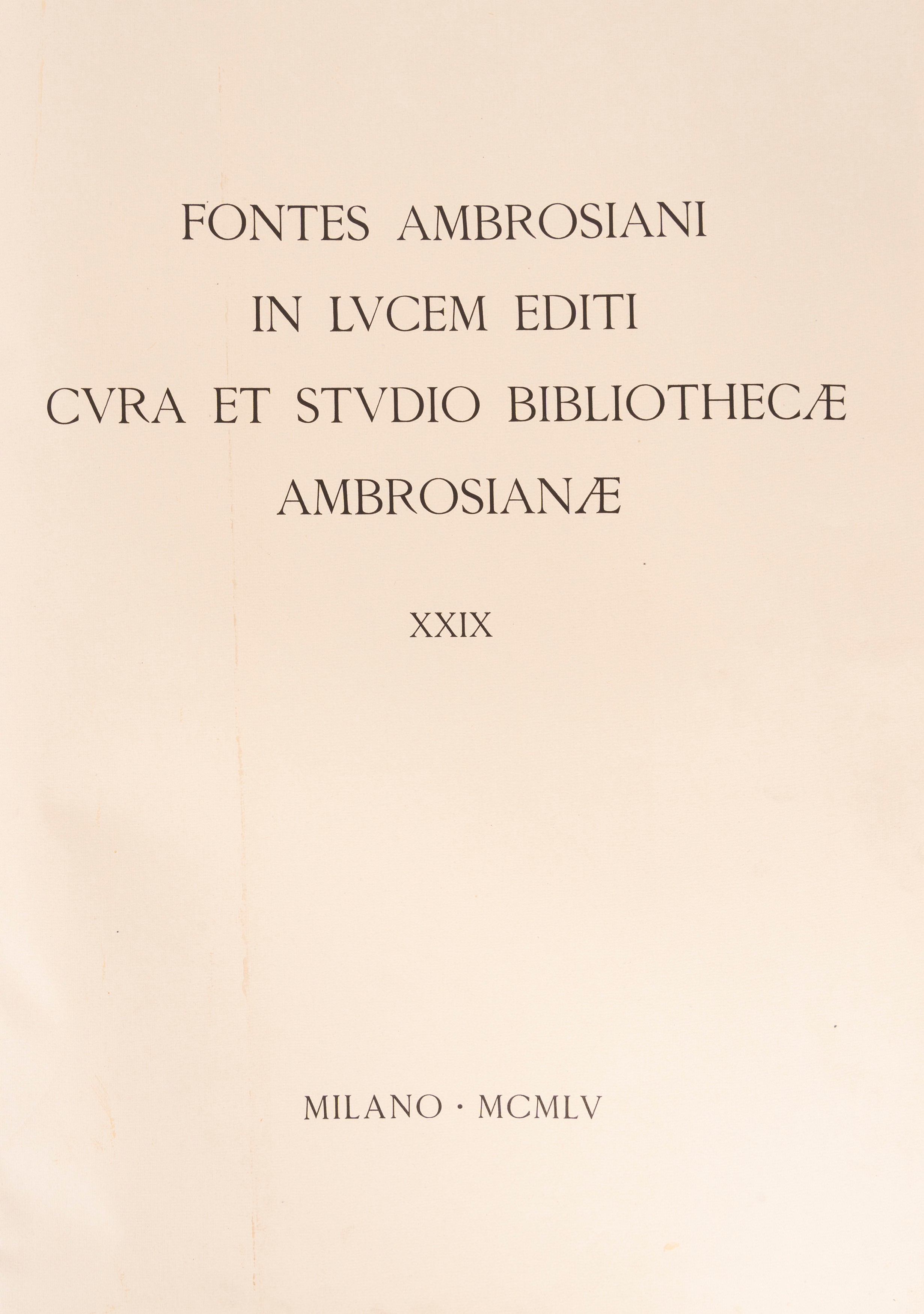 [Codice Resta] Fontes Ambrosiani in lucem editi, cura et studio Bibliothecae Ambrosianae, XXIX, 1955