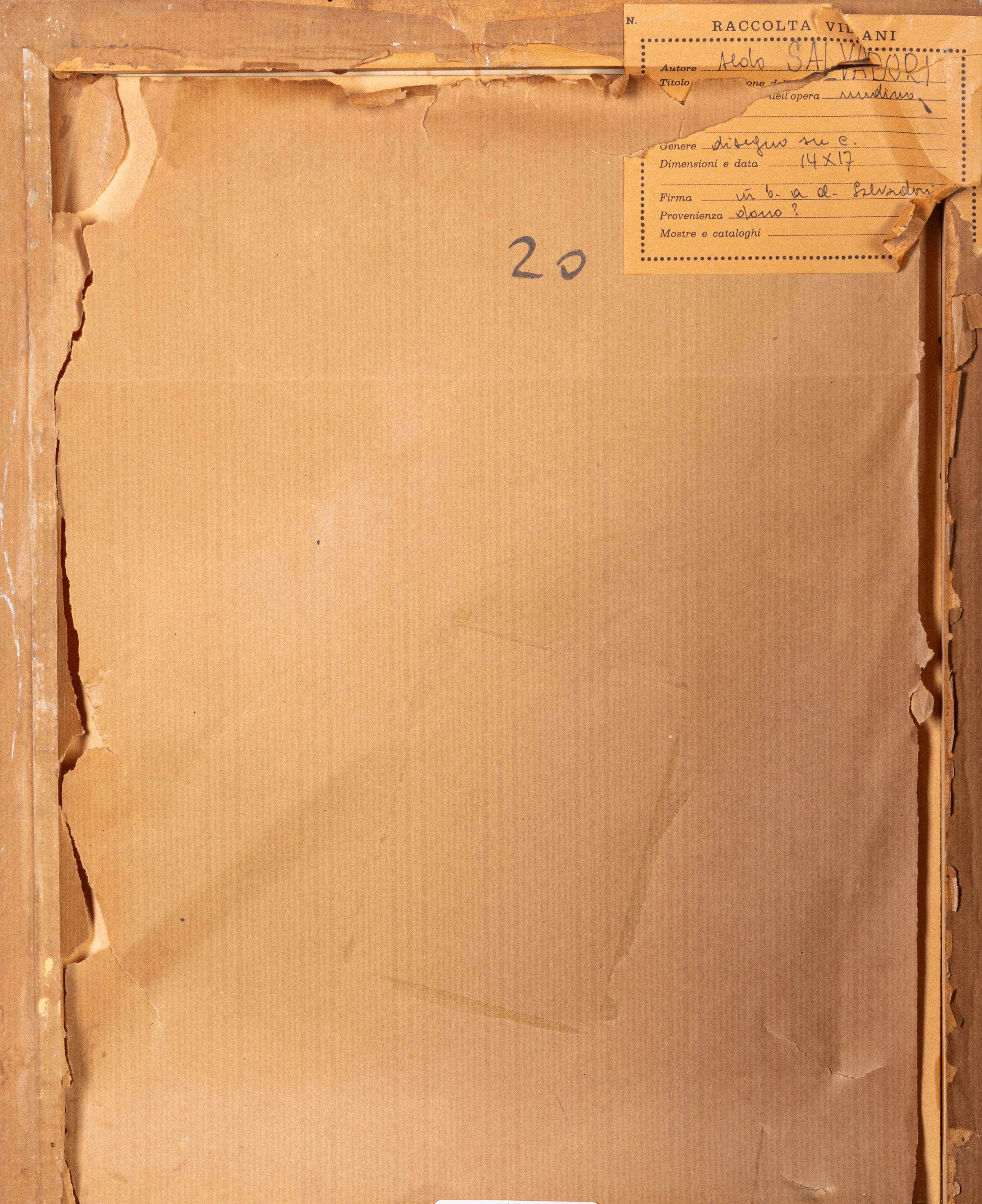 Provenienza: "Raccolta Villani" etichetta al retro con dettagli dell'opera.