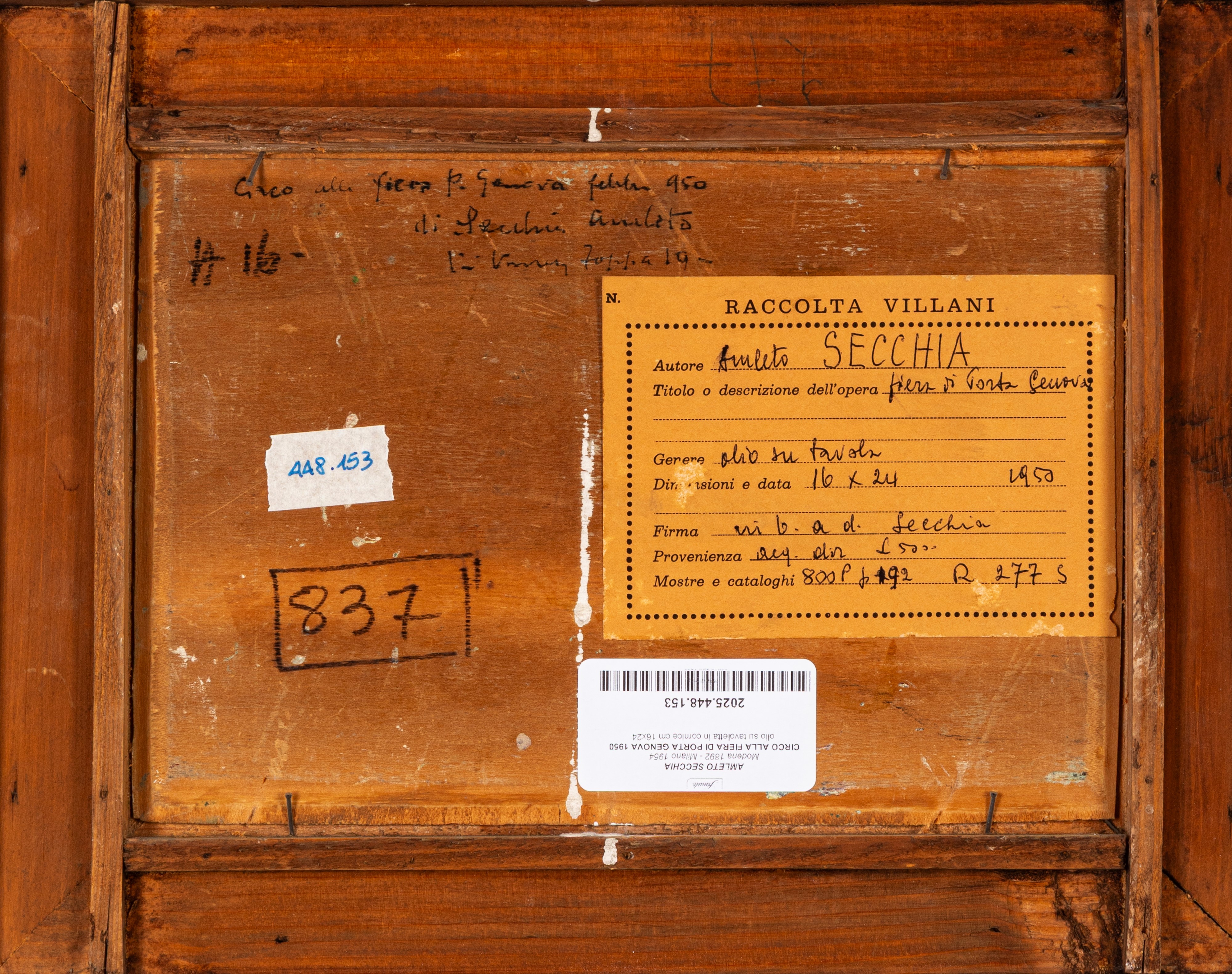 Provenienza: "Raccolta Villani" etichetta al retro con dettagli dell'opera.