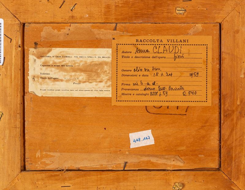 Provenienza: "Raccolta Villani" etichetta al retro con dettagli dell'opera.