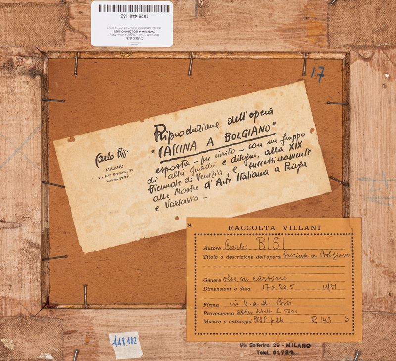 Provenienza: "Raccolta Villani" etichetta al retro con dettagli dell'opera.
