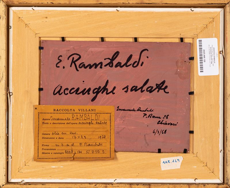 Provenienza: "Raccolta Villani" etichetta al retro con dettagli dell'opera.