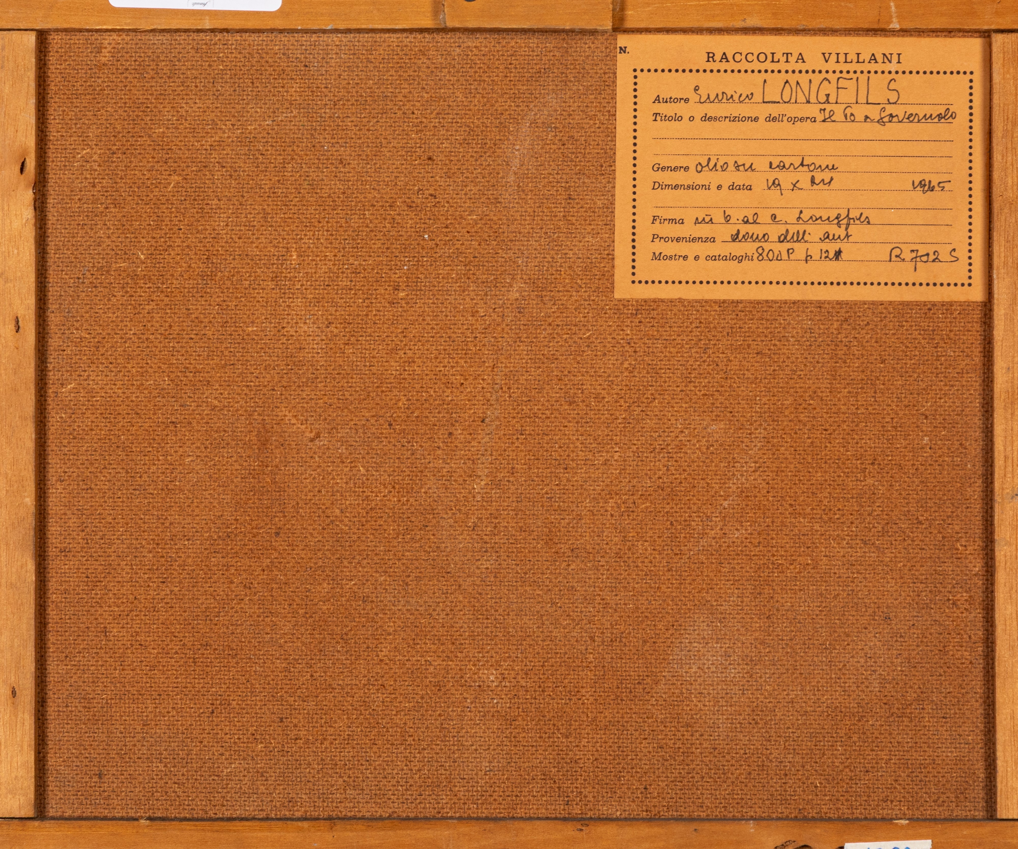 Provenienza: "Raccolta Villani" etichetta al retro con dettagli dell'opera.