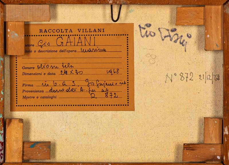 Provenienza: "Raccolta Villani" etichetta al retro con dettagli dell'opera.