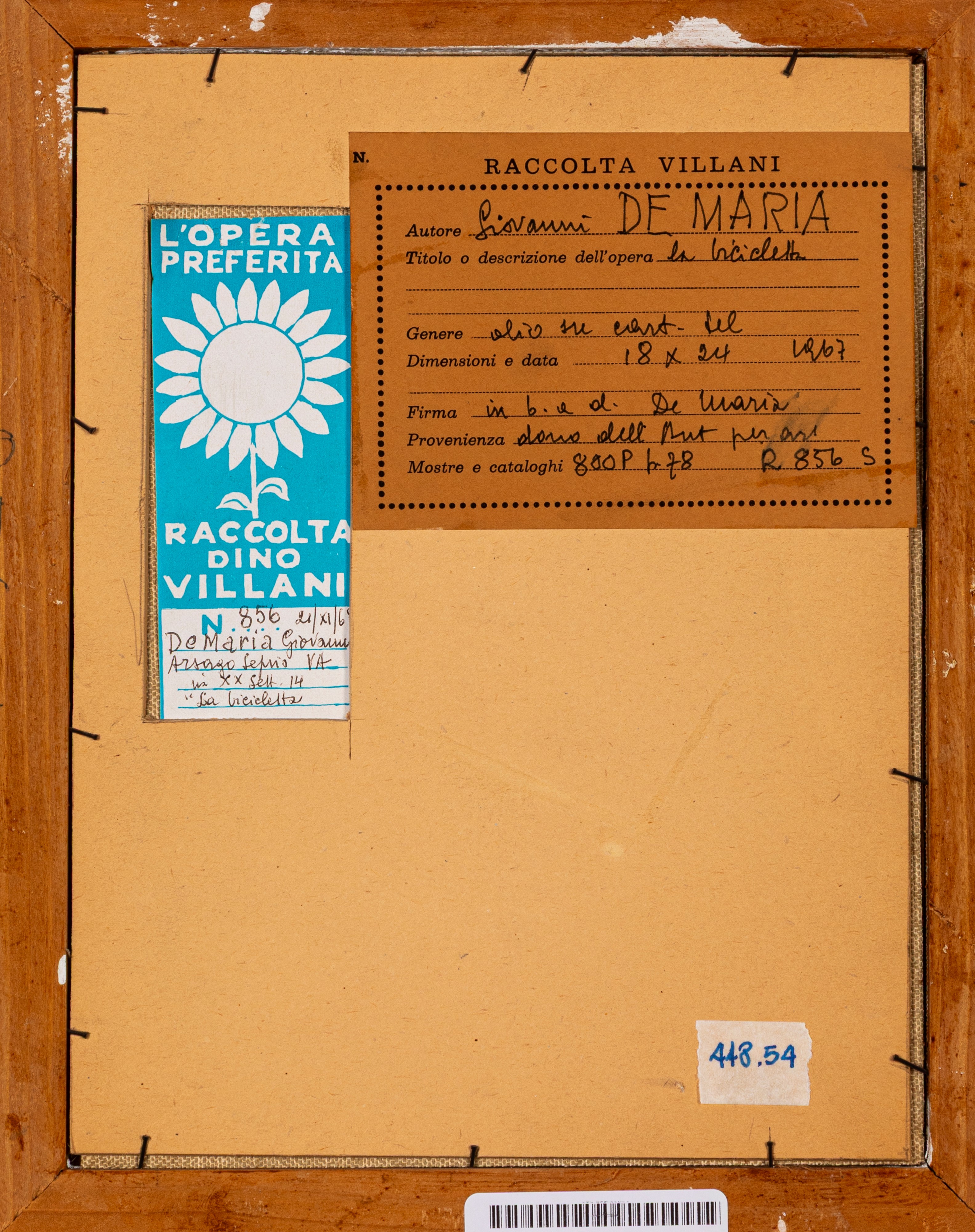 Provenienza: "Raccolta Villani" etichetta al retro con dettagli dell'opera.