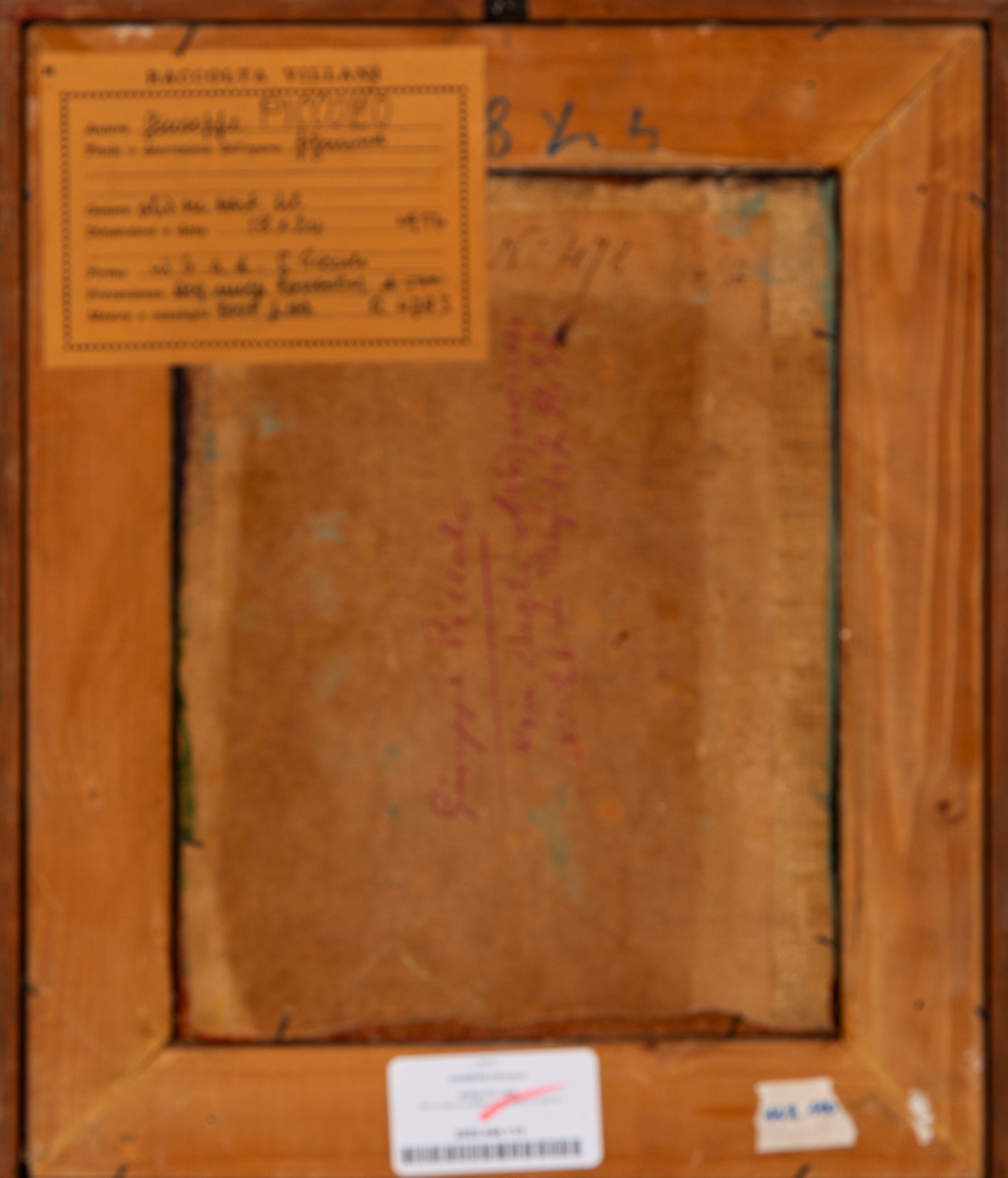 Provenienza: "Raccolta Villani" etichetta al retro con dettagli dell'opera.