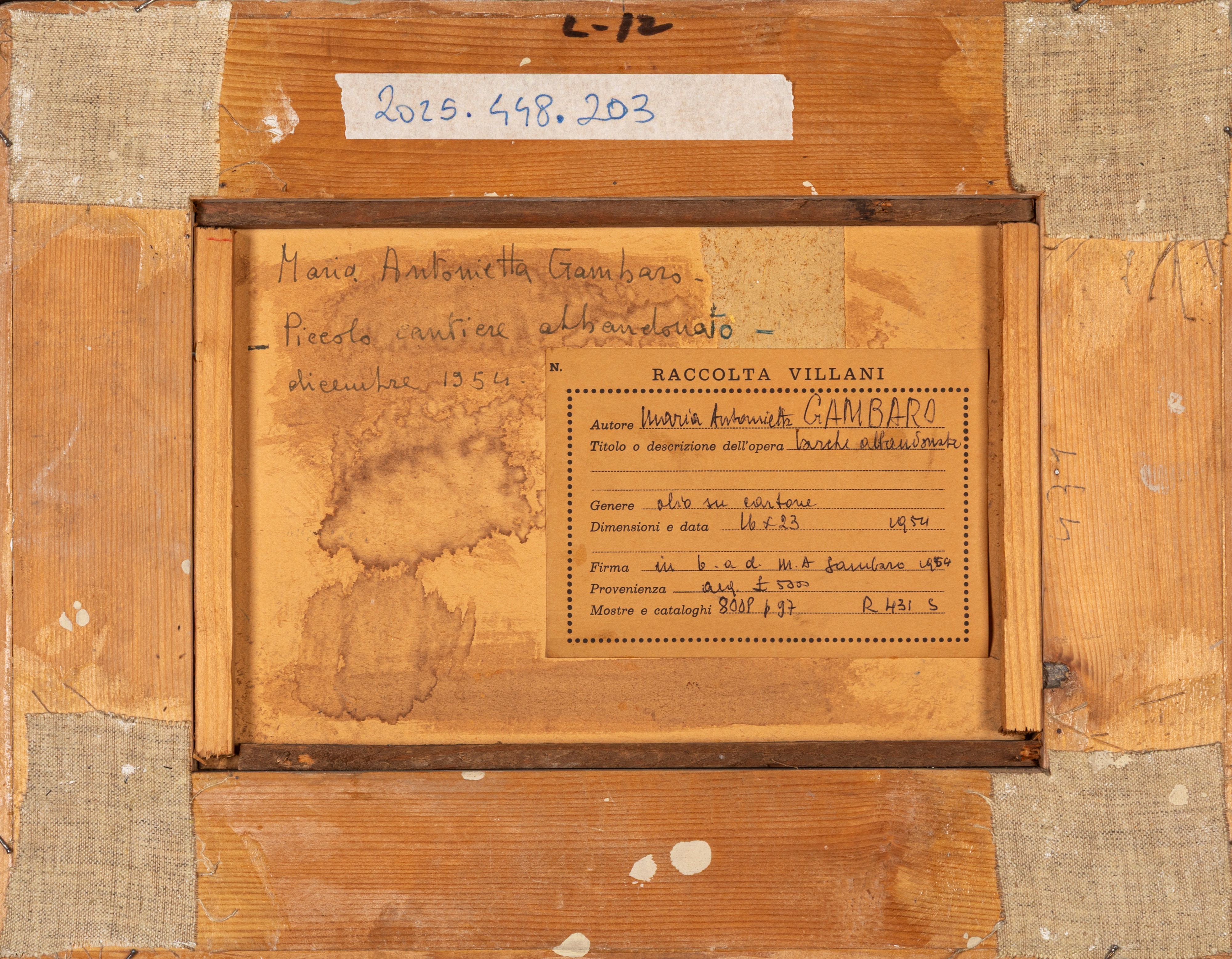 Provenienza: "Raccolta Villani" etichetta al retro con dettagli dell'opera.