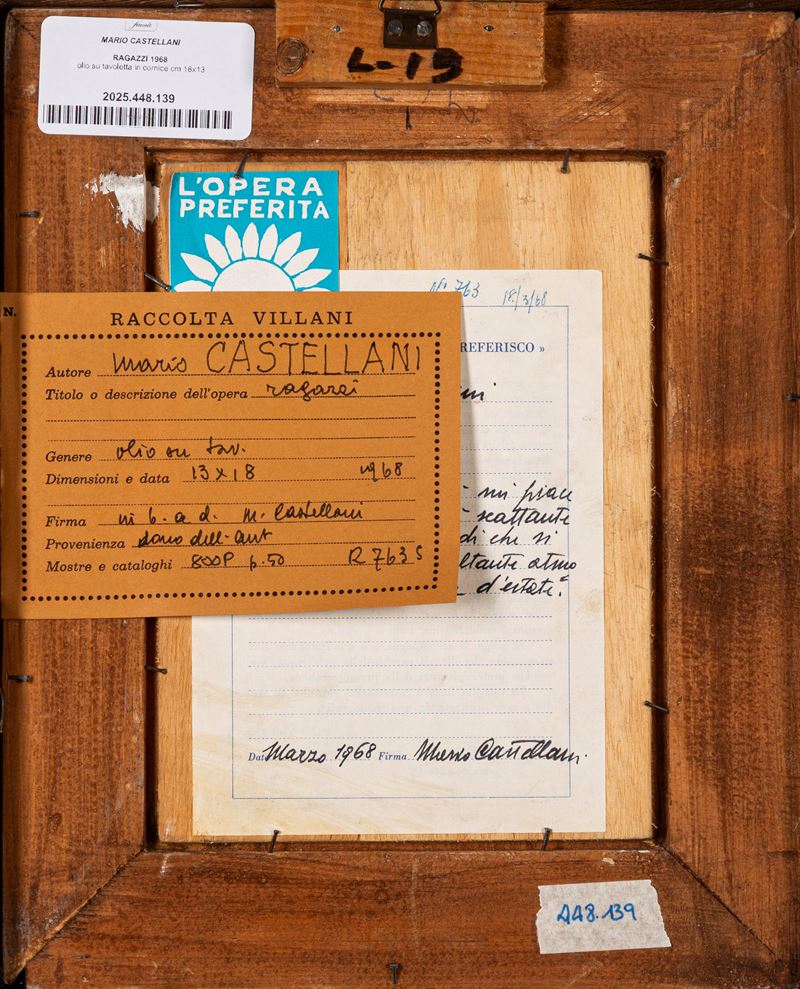Provenienza: "Raccolta Villani" etichetta al retro con dettagli dell'opera.