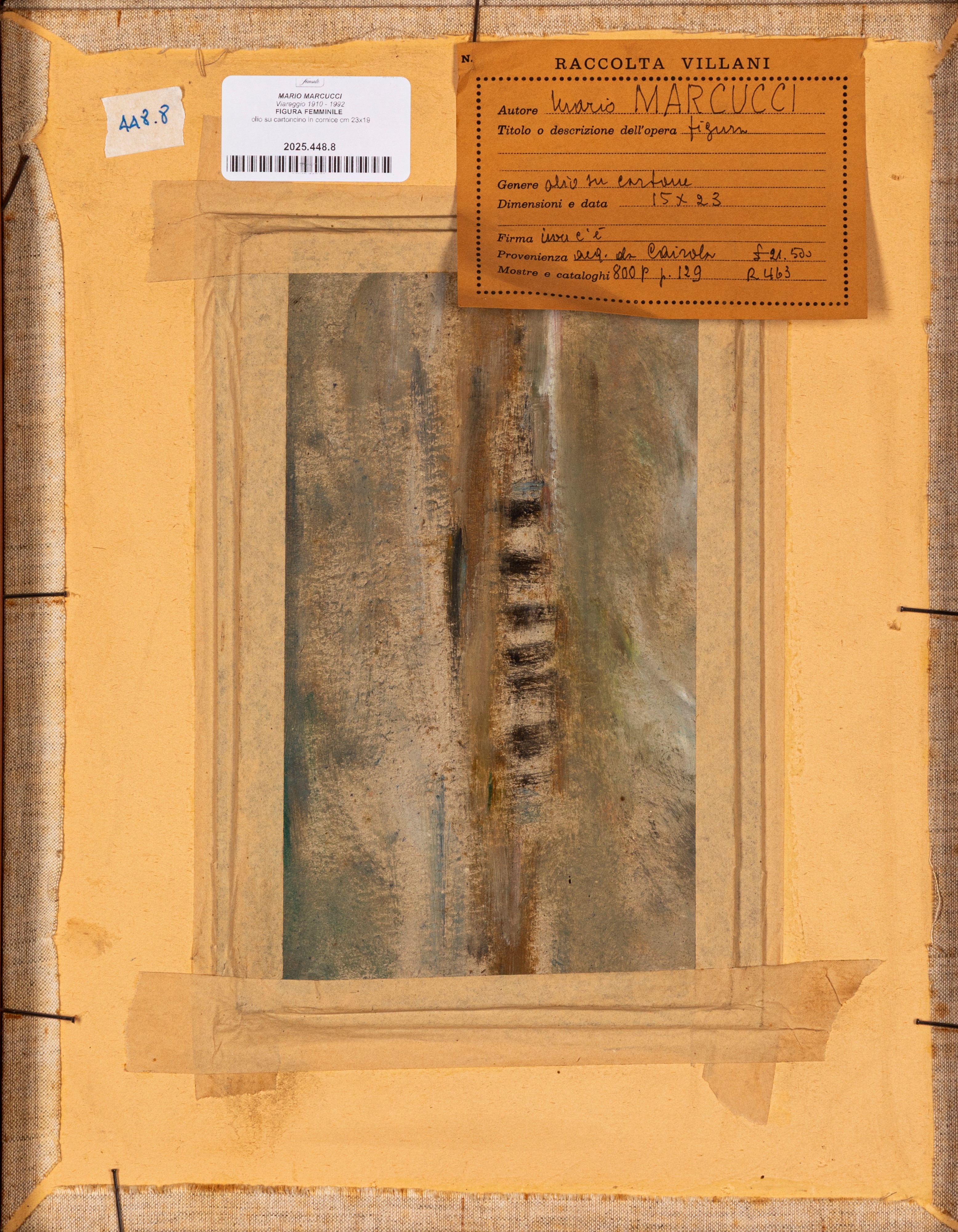 Provenienza: "Raccolta Villani" etichetta al retro con dettagli dell'opera.