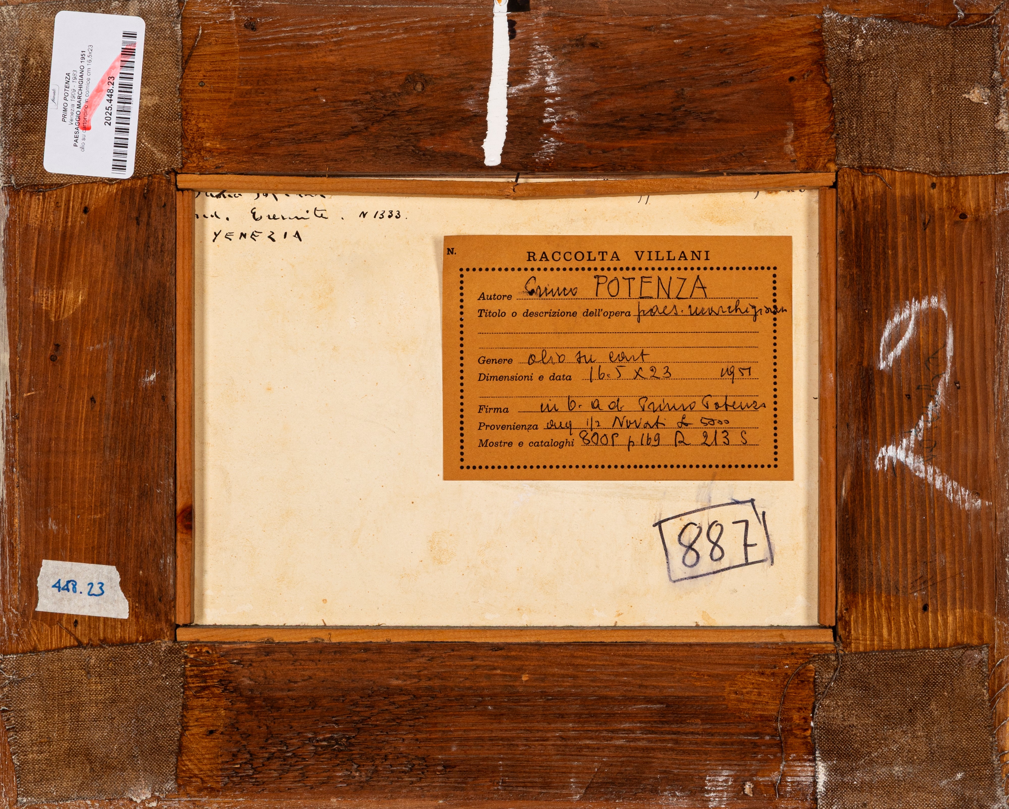 Provenienza: "Raccolta Villani" etichetta al retro con dettagli dell'opera.